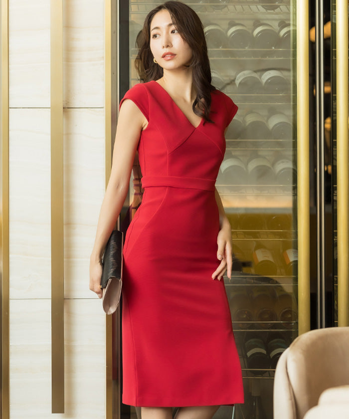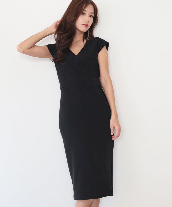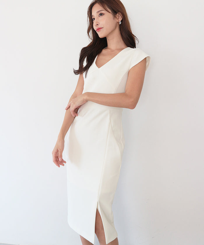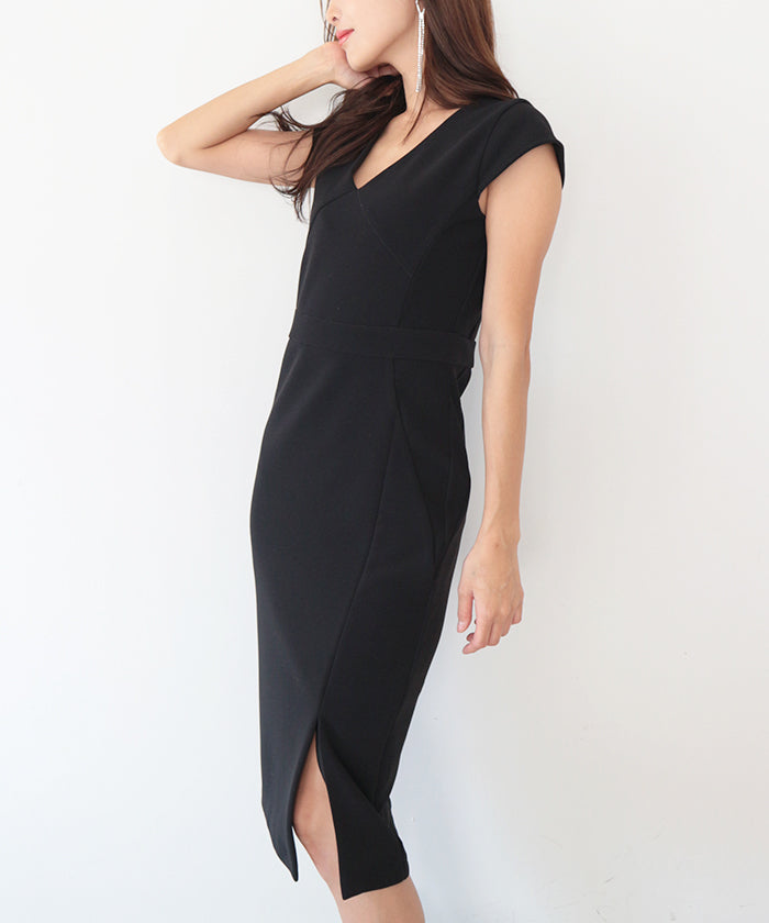 Darts were applied to the front and back for a sleek waistline, and a slit was added at the hem to enhance allure.