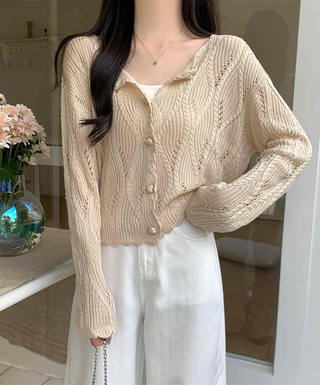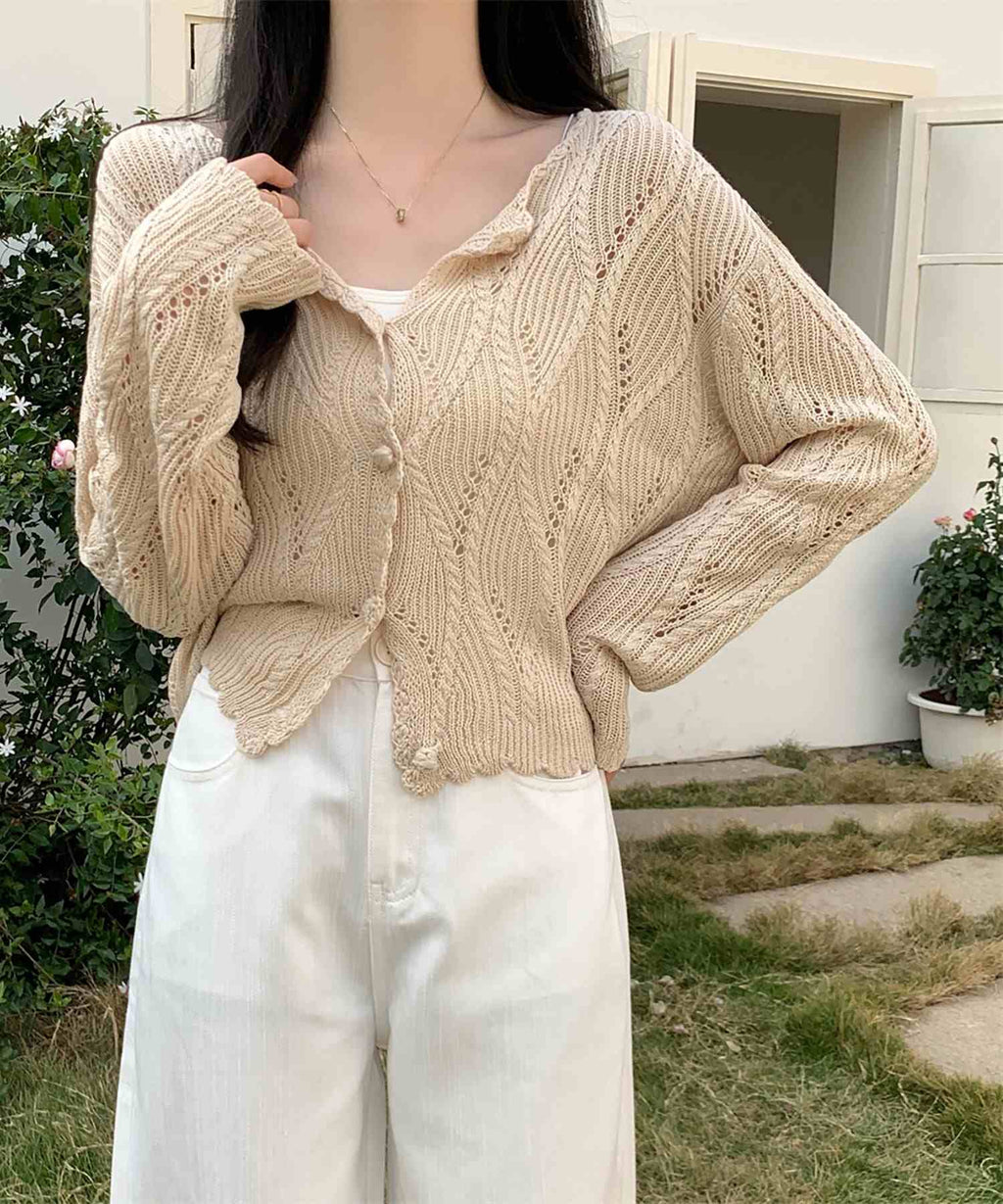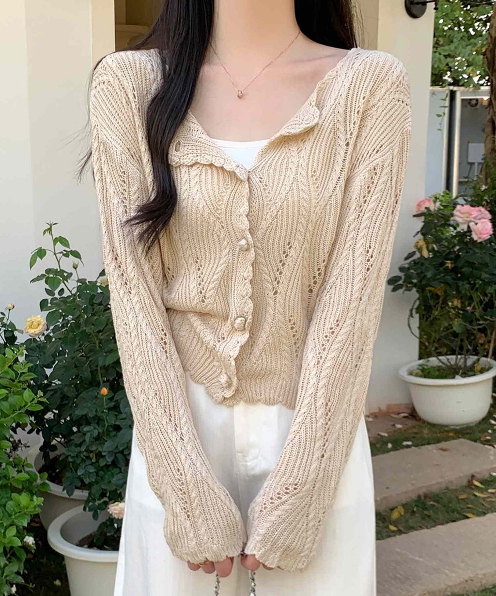 This is a knit cardigan with a cool lace-knit design.