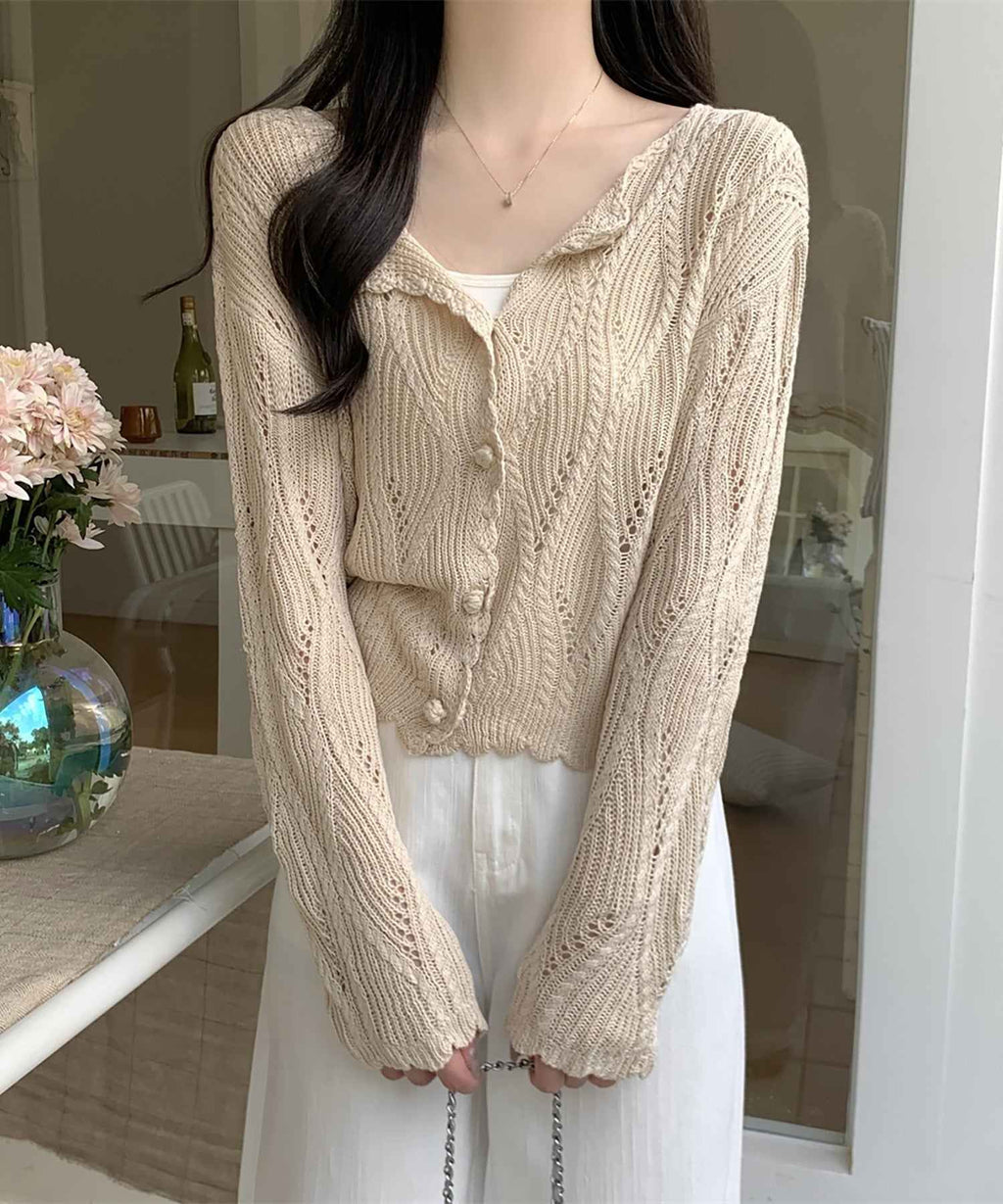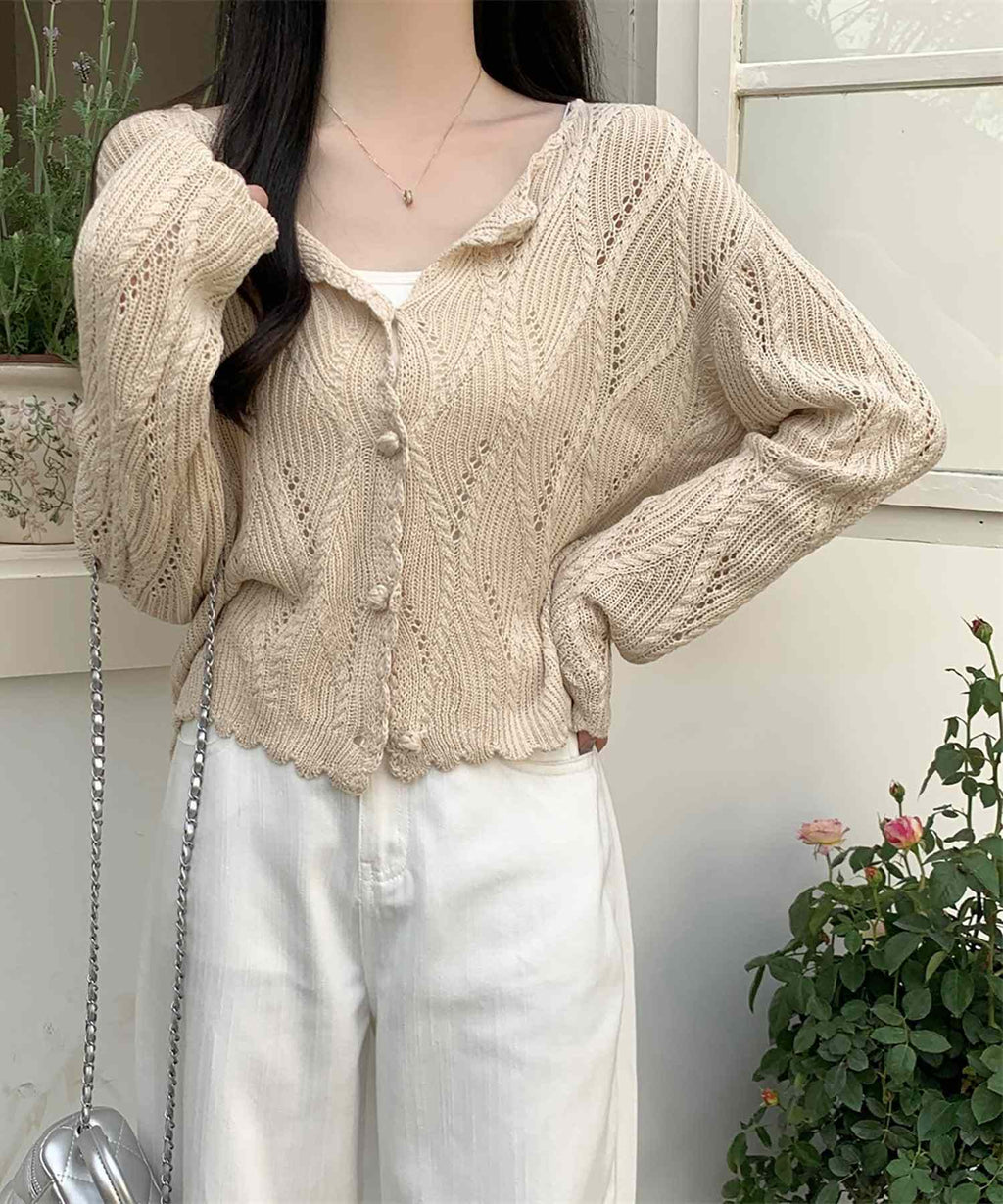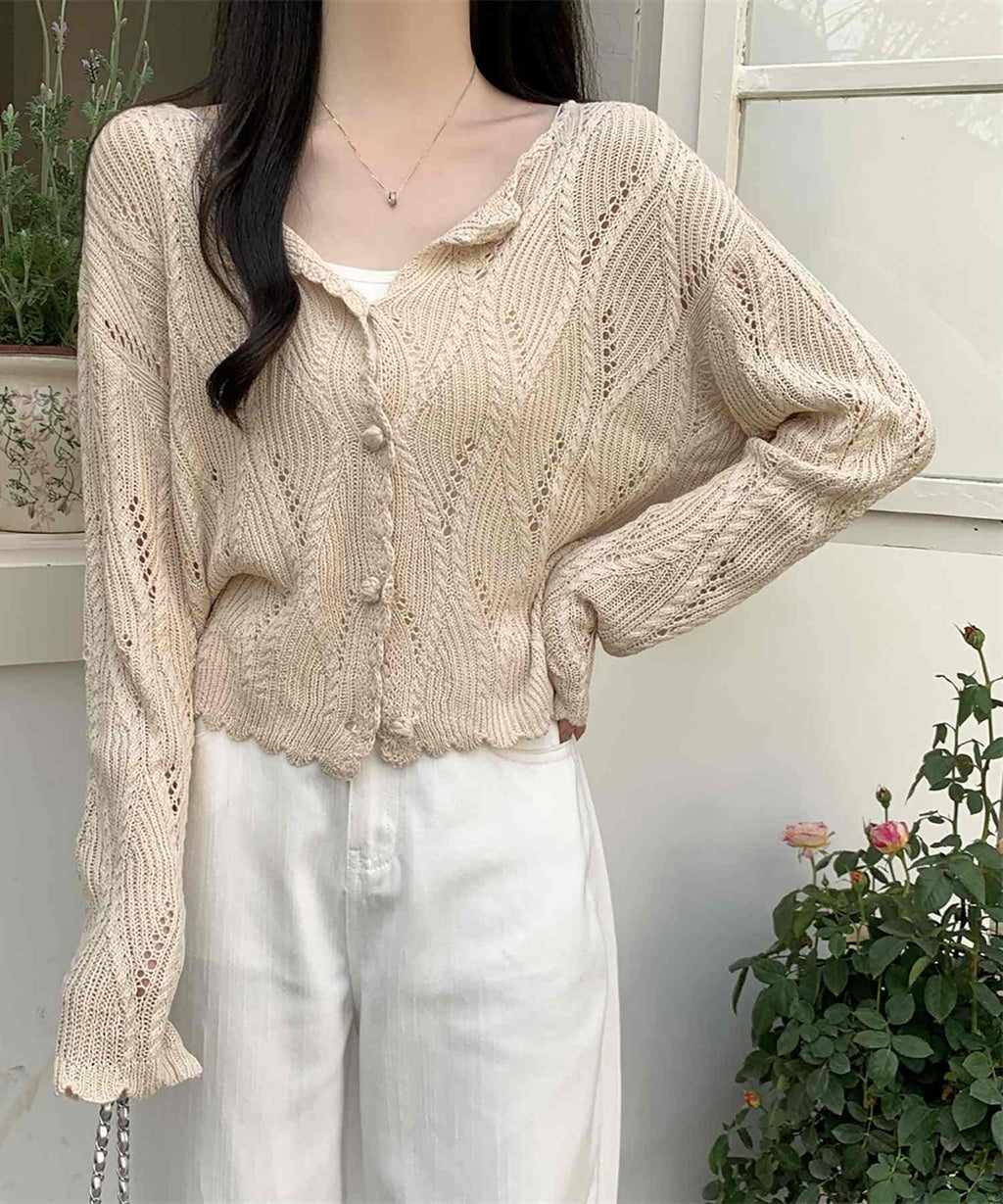 This is a knit cardigan with a cool lace-knit design.