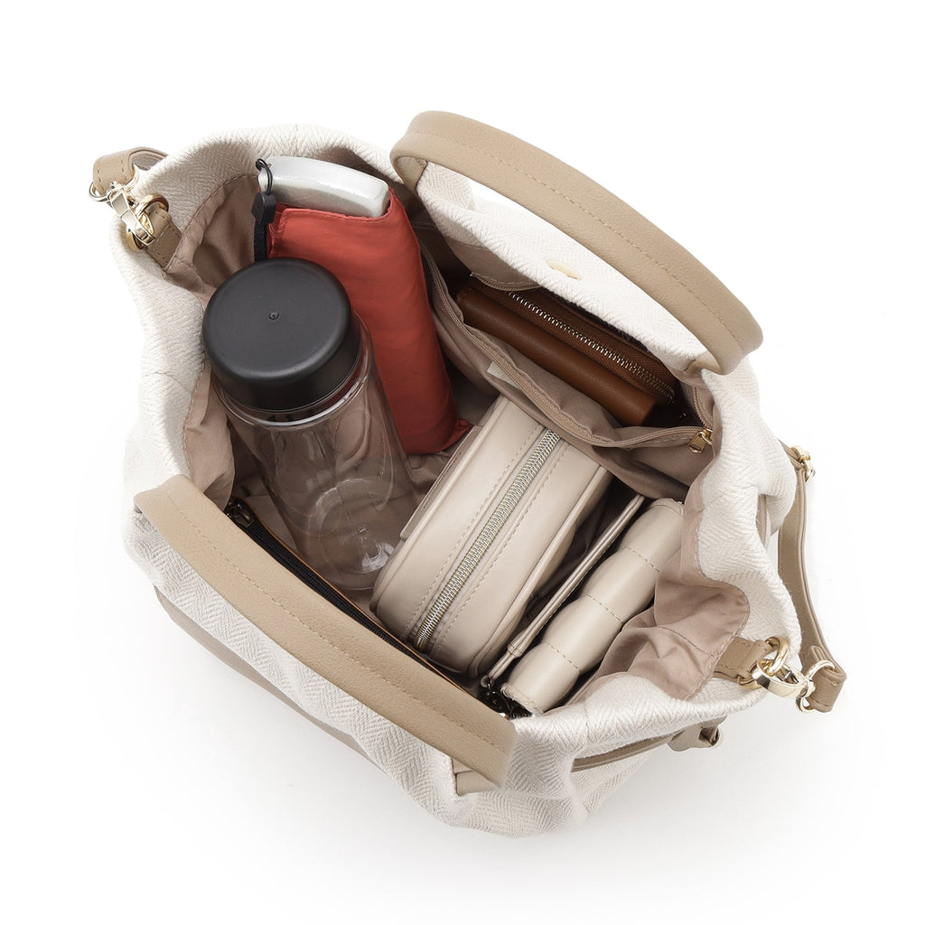 Also, by tightening the mouth, it changes to a silhouette like a drawstring bag, allowing you to enjoy a variety of coordinated styles to your liking.