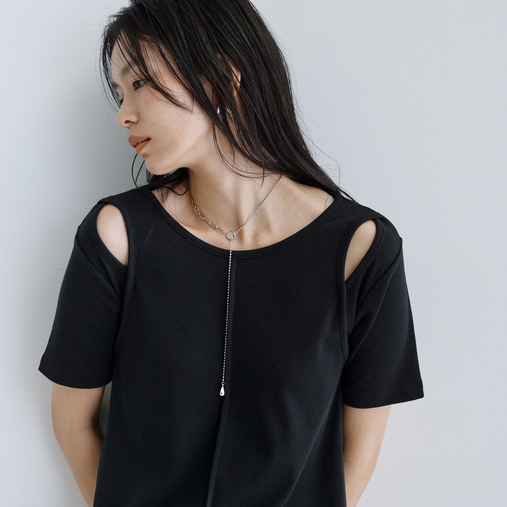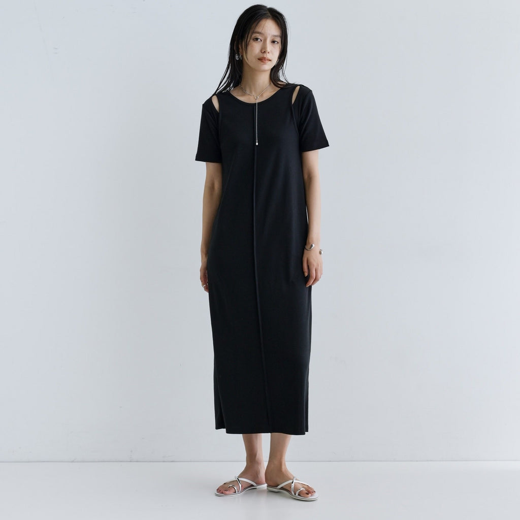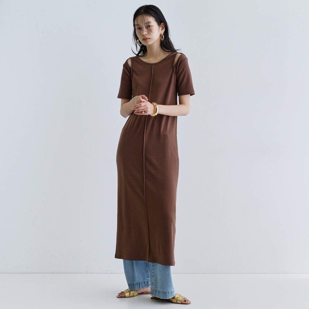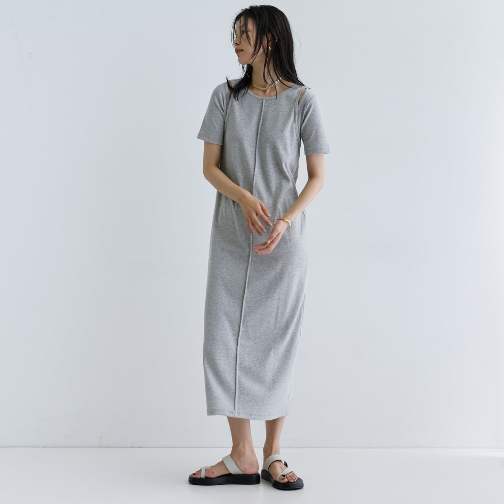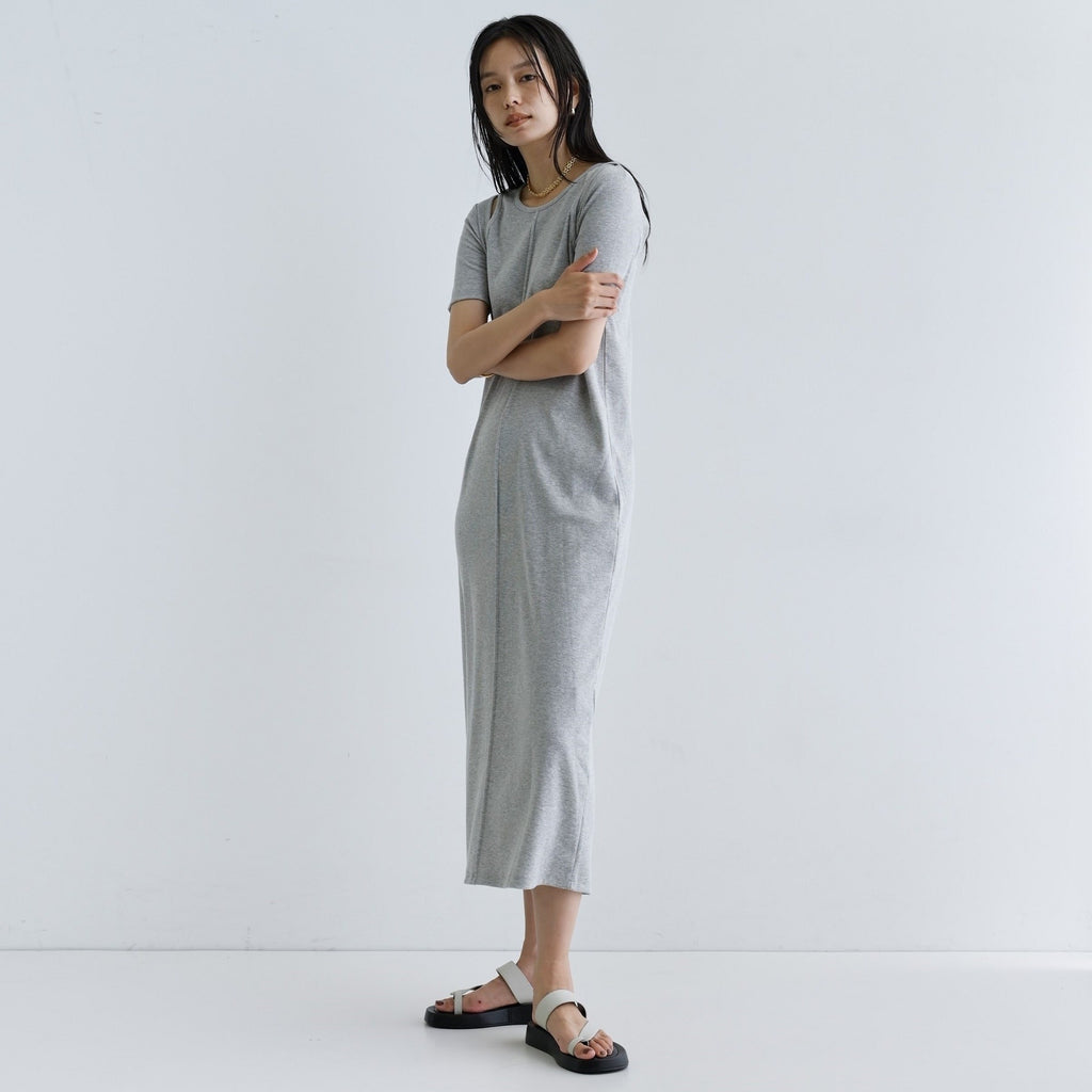 A ribbed cut-and-sew dress with a simple yet sophisticated design.