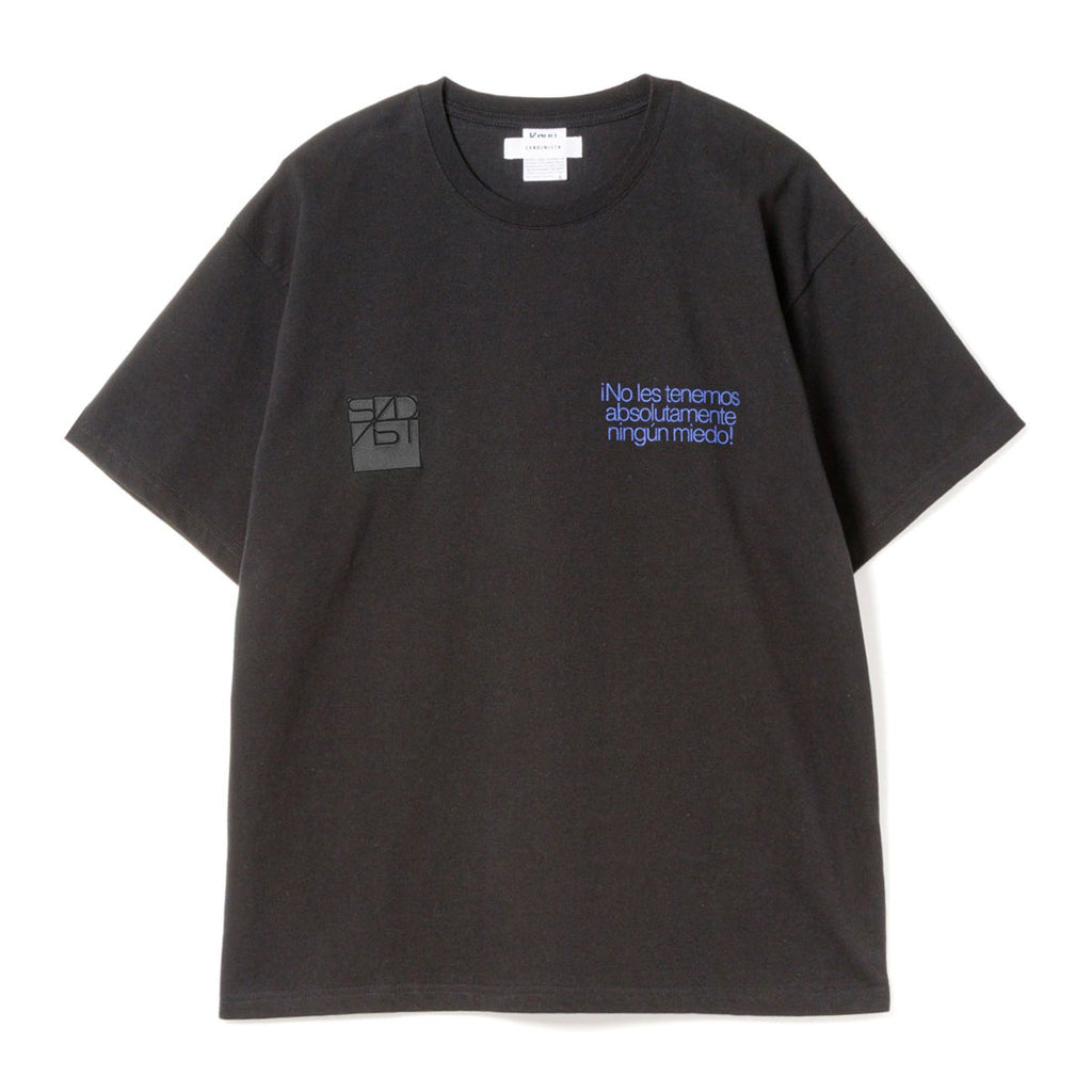 This is a T-shirt embroidered and printed with the Sandinista archive graphic using the plain body brand "K n u u (Nu)" from Tokyo.
