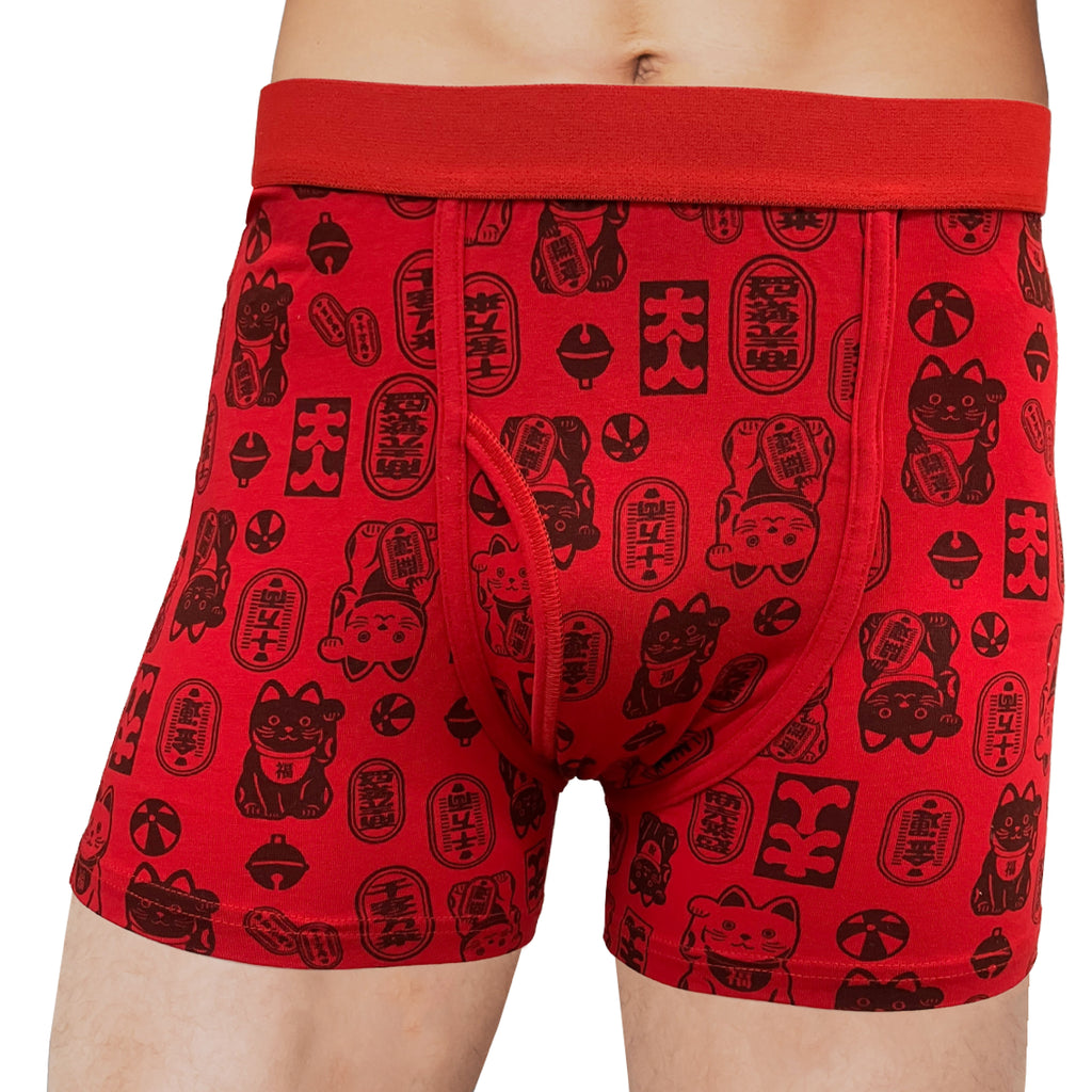 Kaiun Kigan Pants Fortune-Blessing Pants Beckoning Cat Pattern Front Opening Boxer Briefs 【Non-Returnable Item】