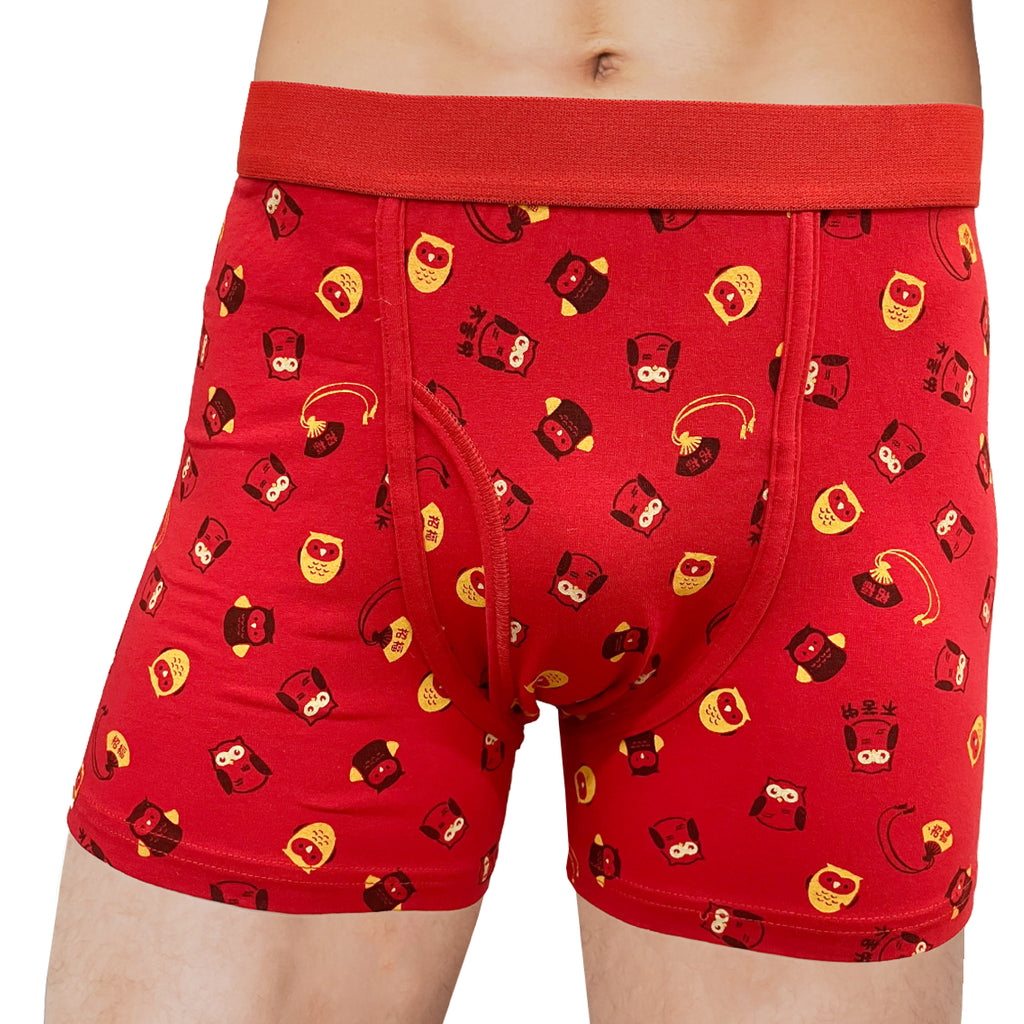 Kaiun Kigan Pants Fortune-Blessing Prayer Pants Owl Pattern Front Opening Boxer Briefs 【Non-returnable Product】