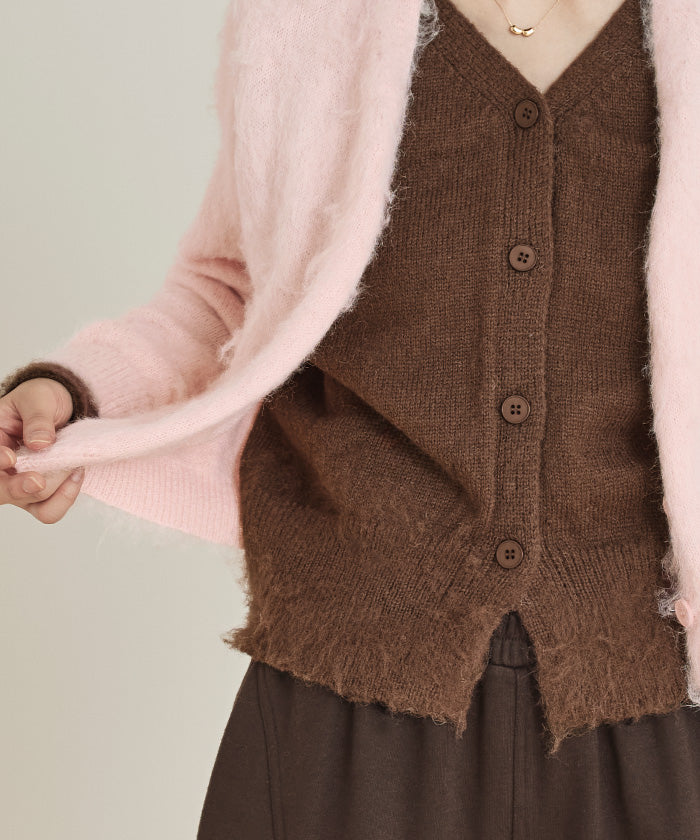 ・The buttons on the cardigan part can be opened for a 2-way style.