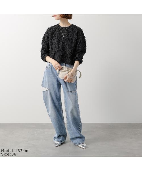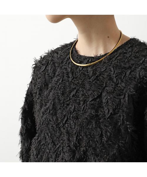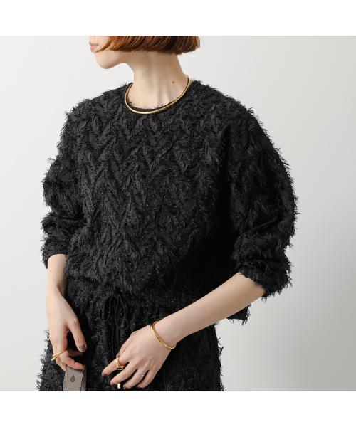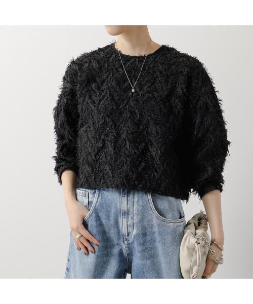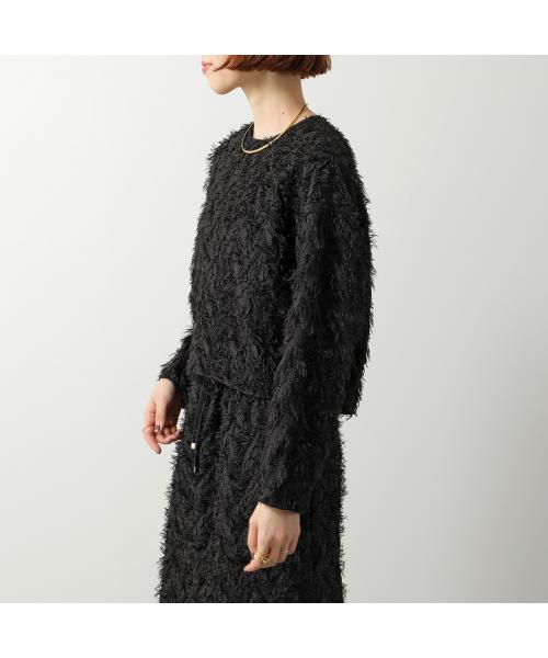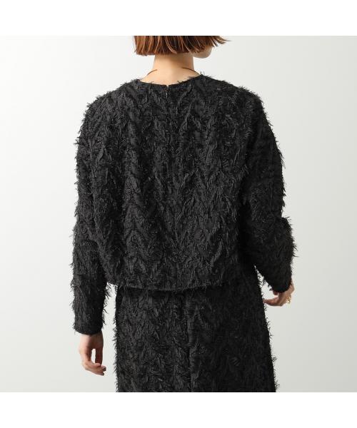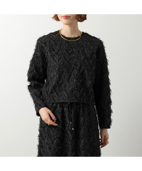 PASSIONE パシオーネ ブラウス 546936 レディース 長袖 フリンジ ジャガード クロップド丈 クルーネック プルオーバー 99