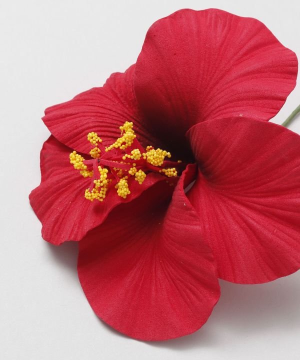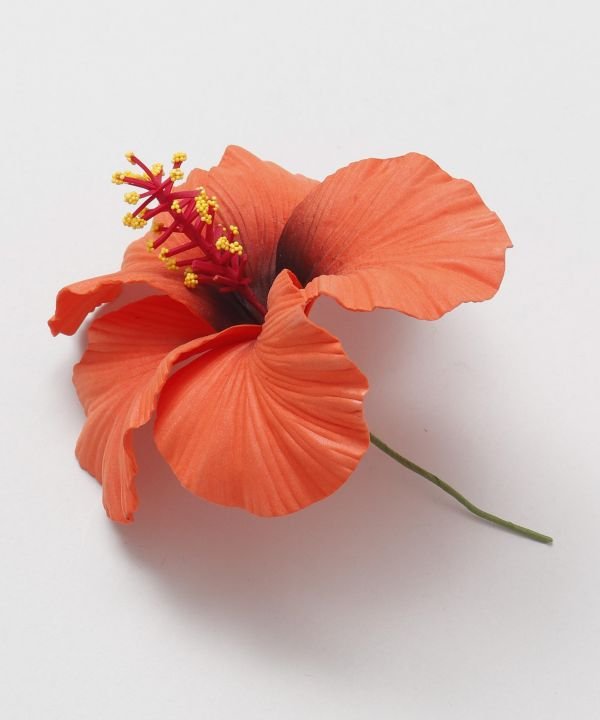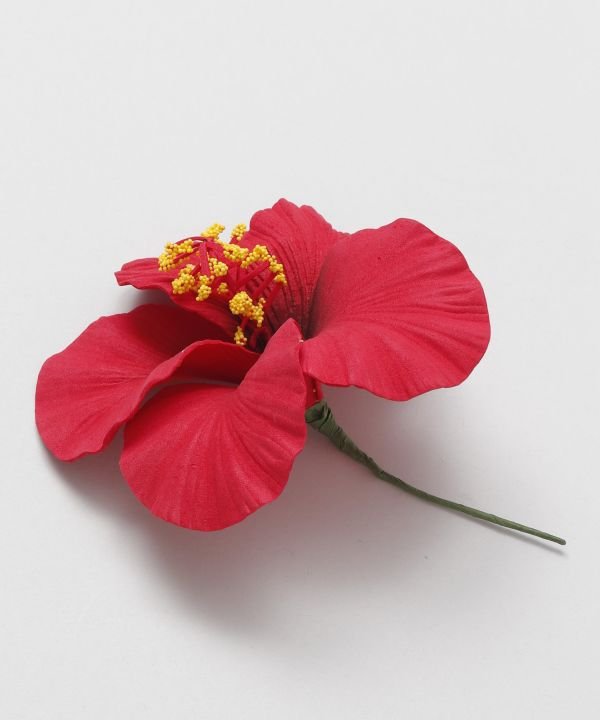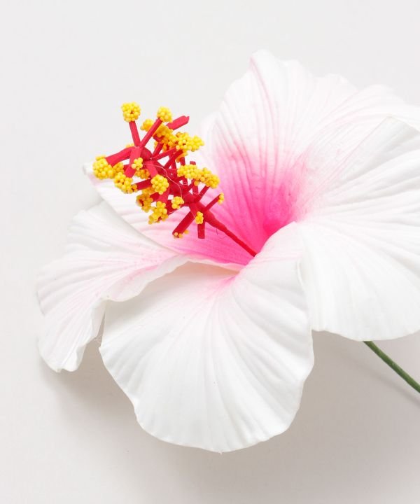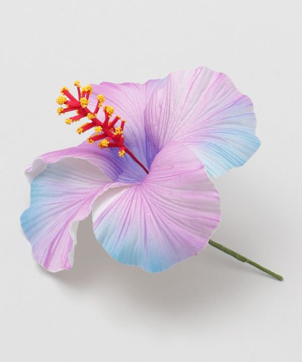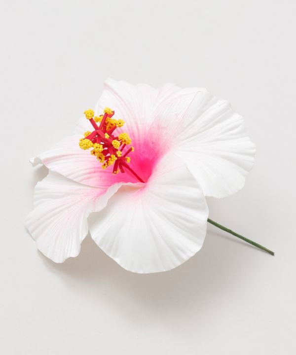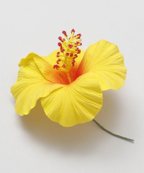 Light and realistic three-dimensional hibiscus pick. The stigma part contains wire, allowing you to shape it as you like. It is a cute, eye-catching pick that looks great whether used as a single flower or grouped together.