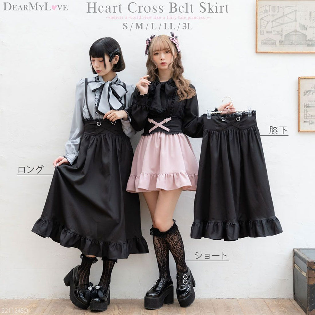 Introducing a cute skirt with a heart cross belt in three lengths to choose from!