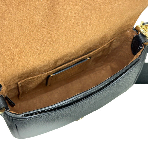This shoulder bag features high-quality leather material with an attractive black and gold color scheme.