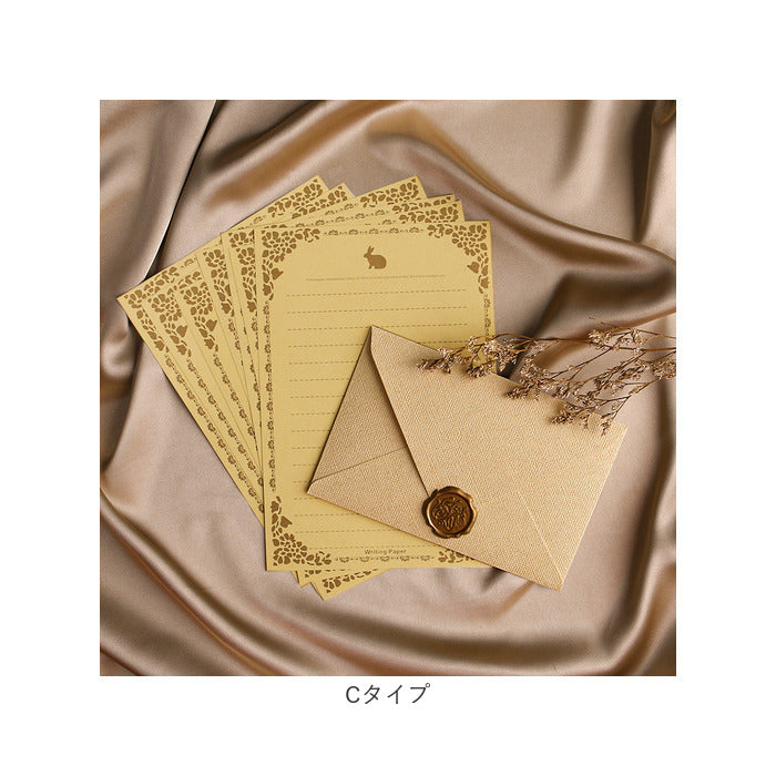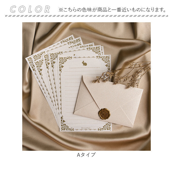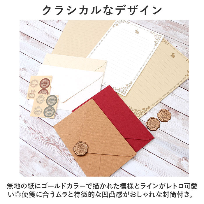 Retro and cute♪ A new antique-style letter set is now available♪【Classical design】Patterns and lines drawn in gold color on plain paper are retro cute◎ The envelope comes with a stylish uneven texture that matches the letter paper. 【Ready to write and gift】 A set item of letter paper, envelope, and sealing stickers that can be written and gifted immediately. It's a nice point that you can write and gift right away. 【Sealing stamp-style stickers】 Sealing stickers that are used by melting wax with heat and pressing it down. The central pattern gives it an authentic look, which is also appealing. Being a sticker makes it easy to apply, which is GOOD. 【Also for creating thank-you letters】 Of course, it can be used for regular correspondence or message cards, and it's also recommended for thank-you letters for weddings, etc.♪