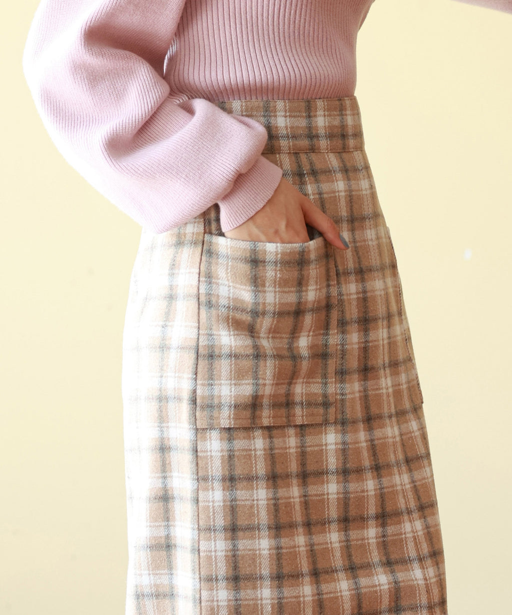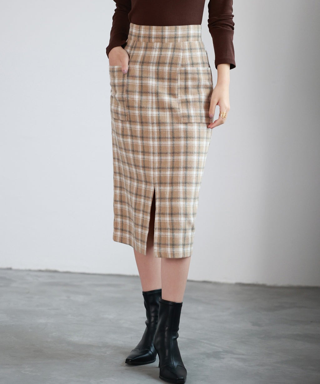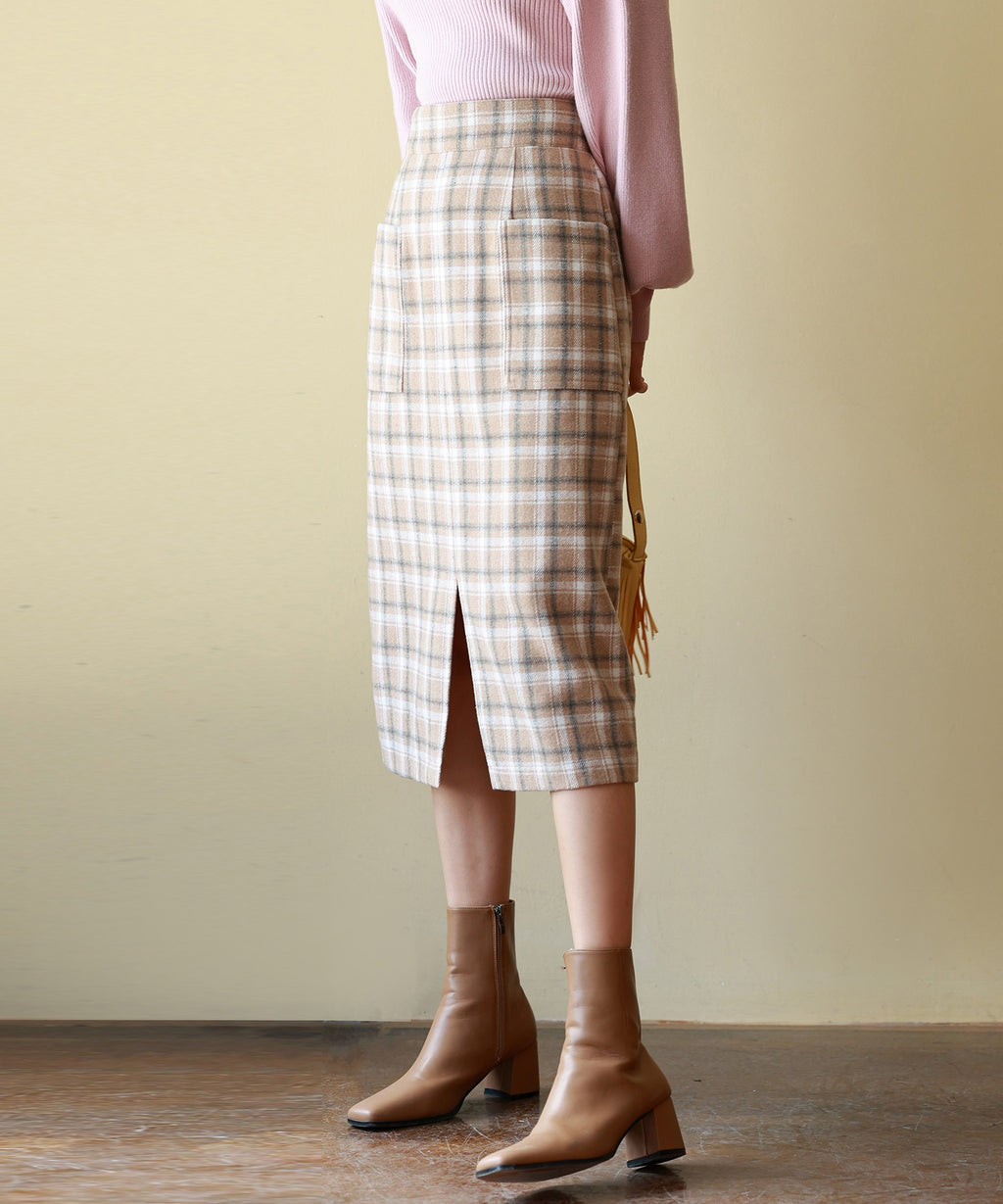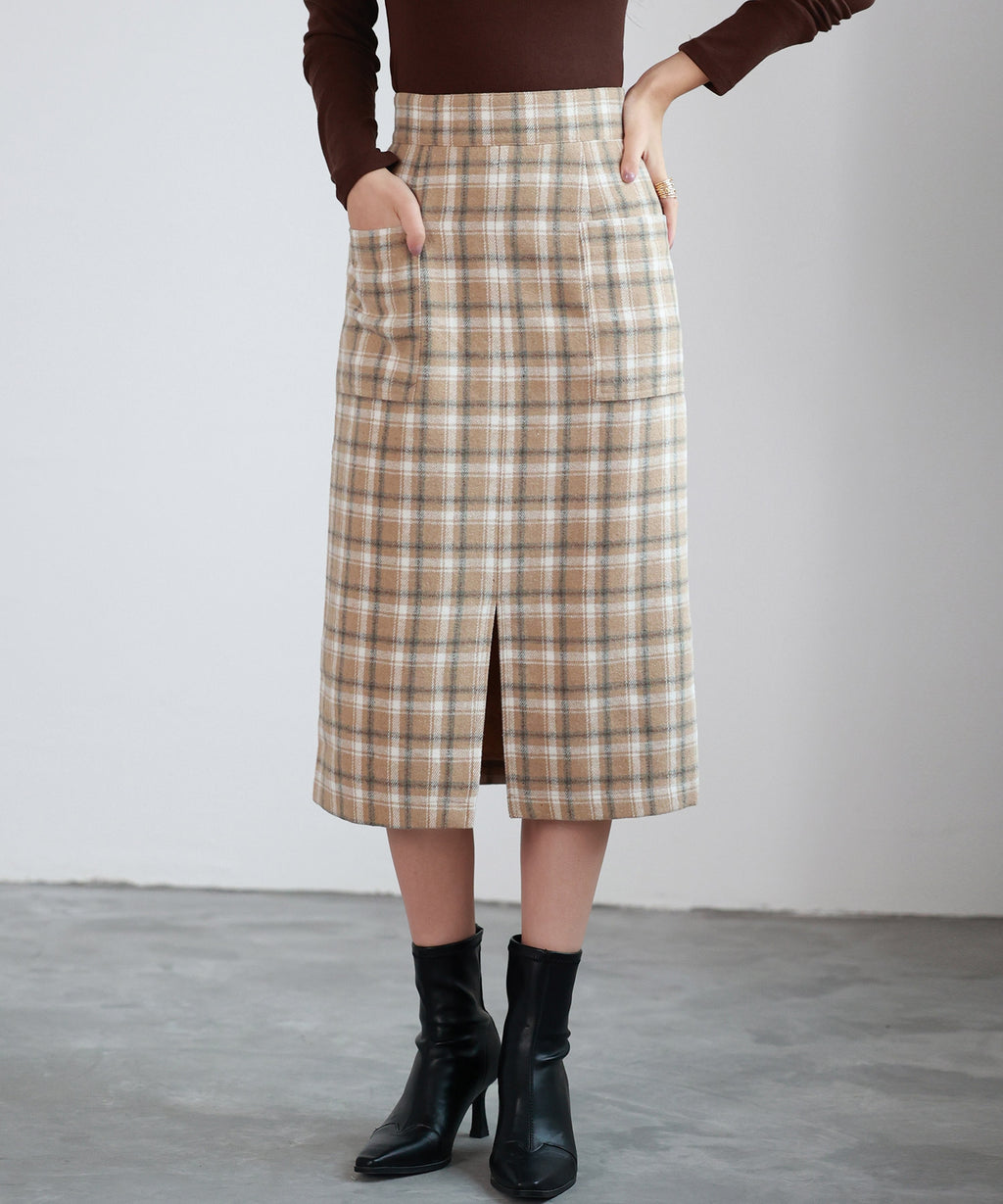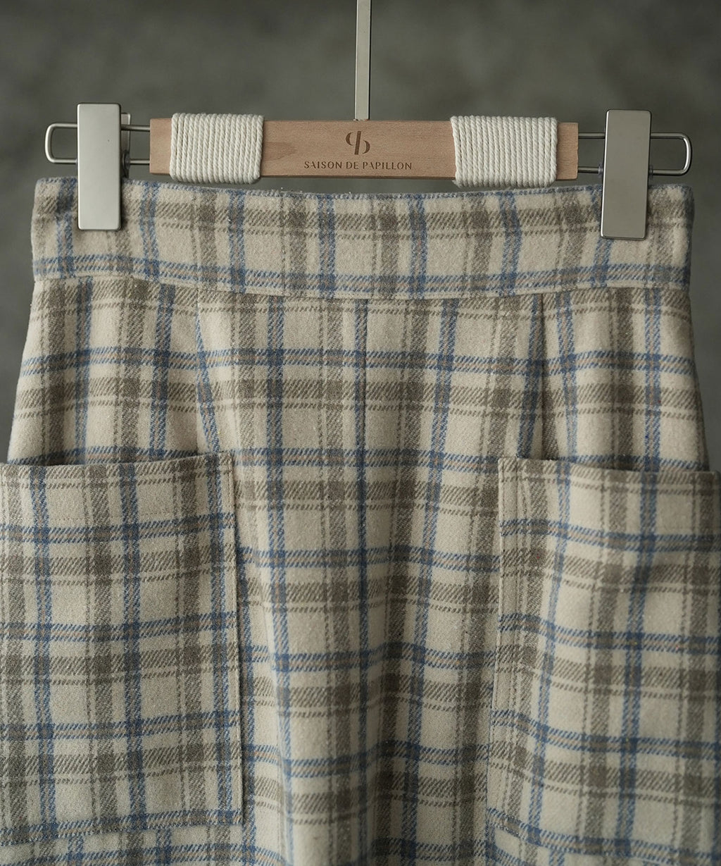 セゾンドパピヨン SAISON DE PAPILLON ウールタッチチェック柄ナロースカート