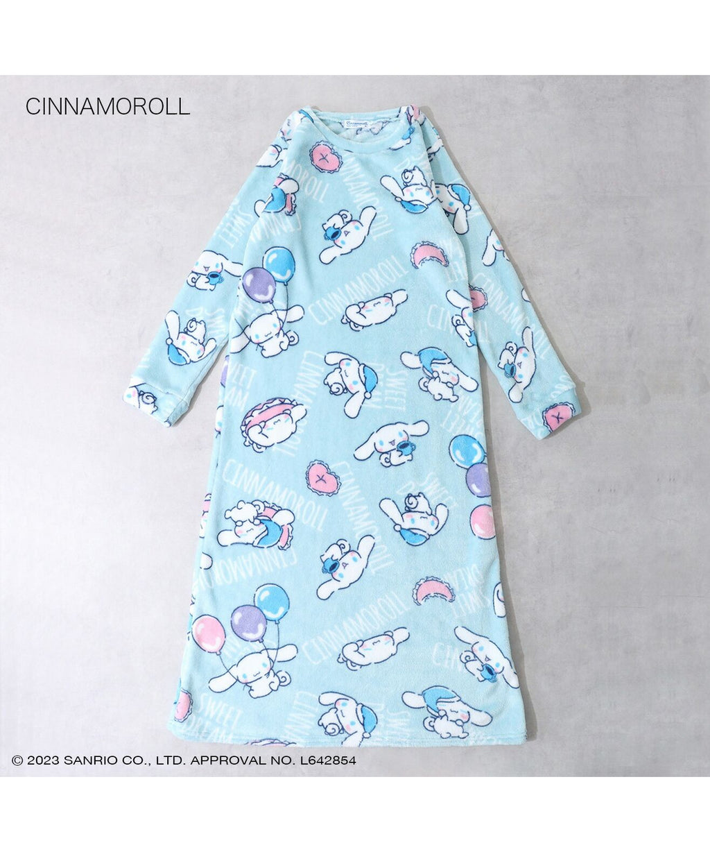 This is a full-pattern loungewear one-piece of Sanrio Characters' Cinnamoroll.