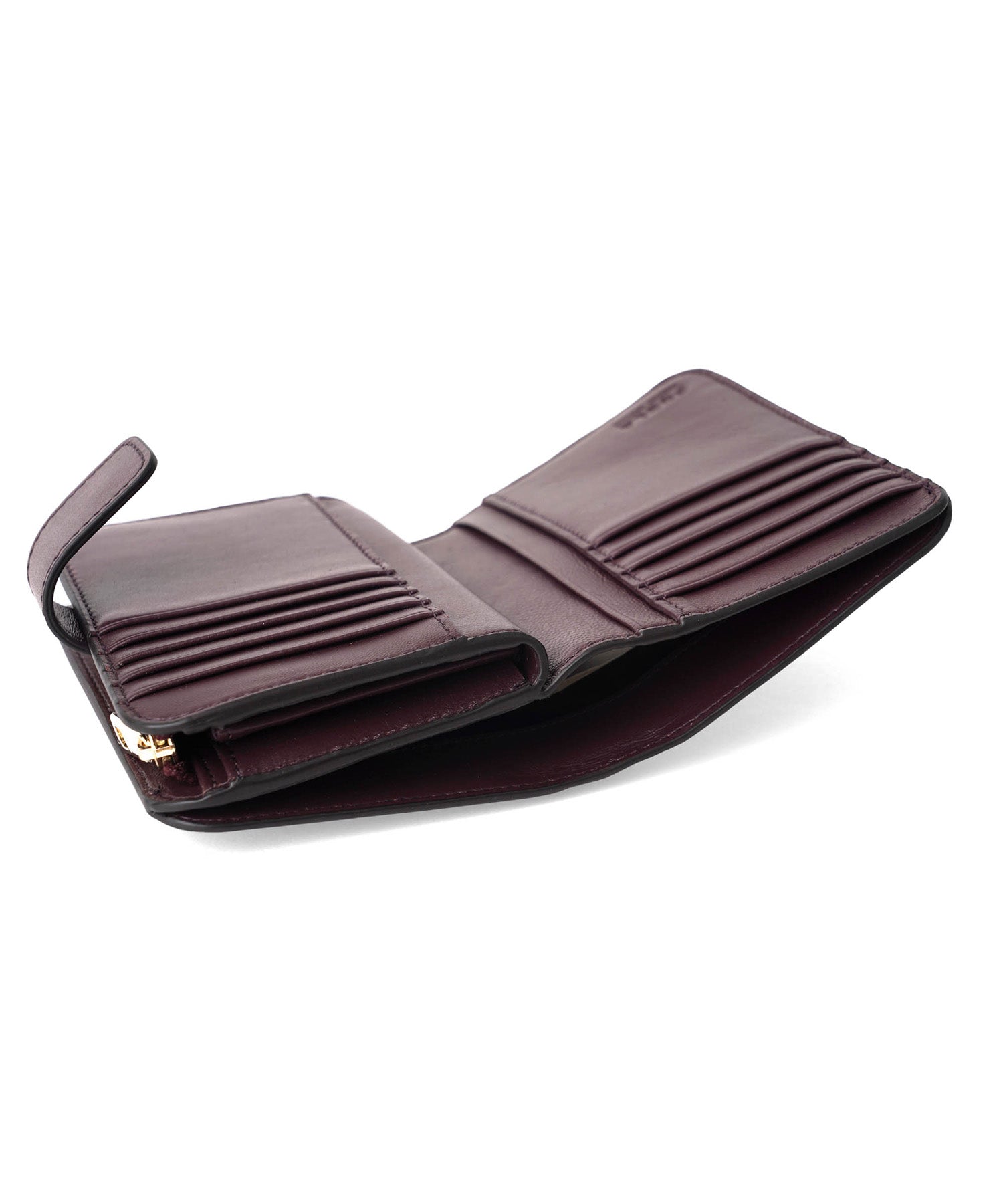 [スペック] Snap closure / Inside: Bill compartment x1, Card pockets x10, Open pockets x4 / Outside: L-shaped zipper coin purse x1