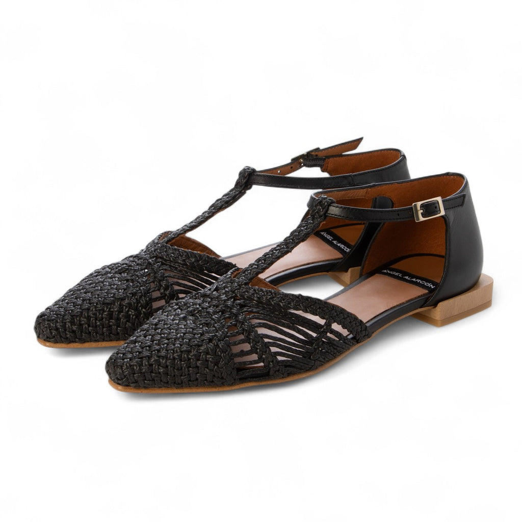 ANGEL ALARCON ANGEL ALARCON Woven T Strap Pointed Pumps