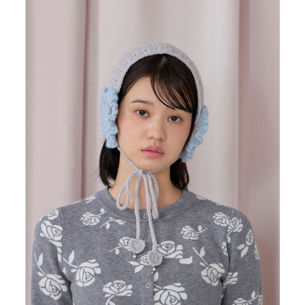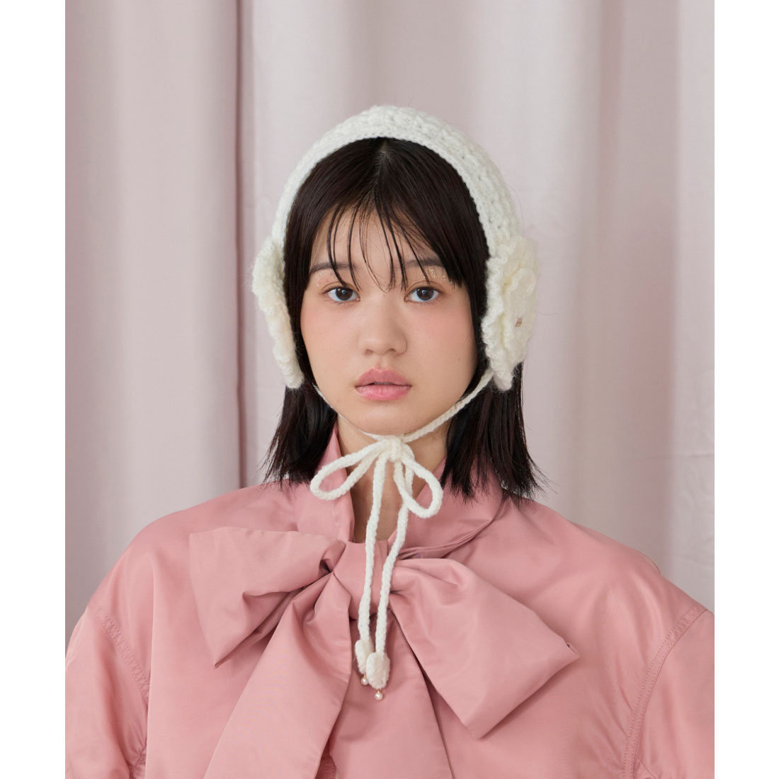 Wrapped tightly in a heart, the lovely ear muffs kaorinomori features a hand-knitted knit hairband in a heart shape.