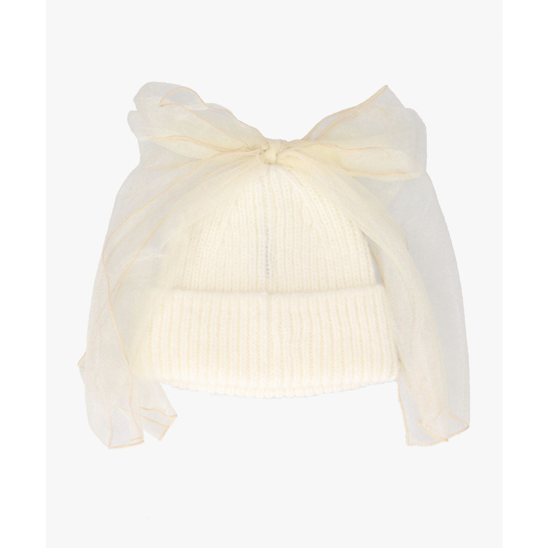 The large ribbon is made of airy tulle material with a subtle sparkle, creating a lightweight finish.
