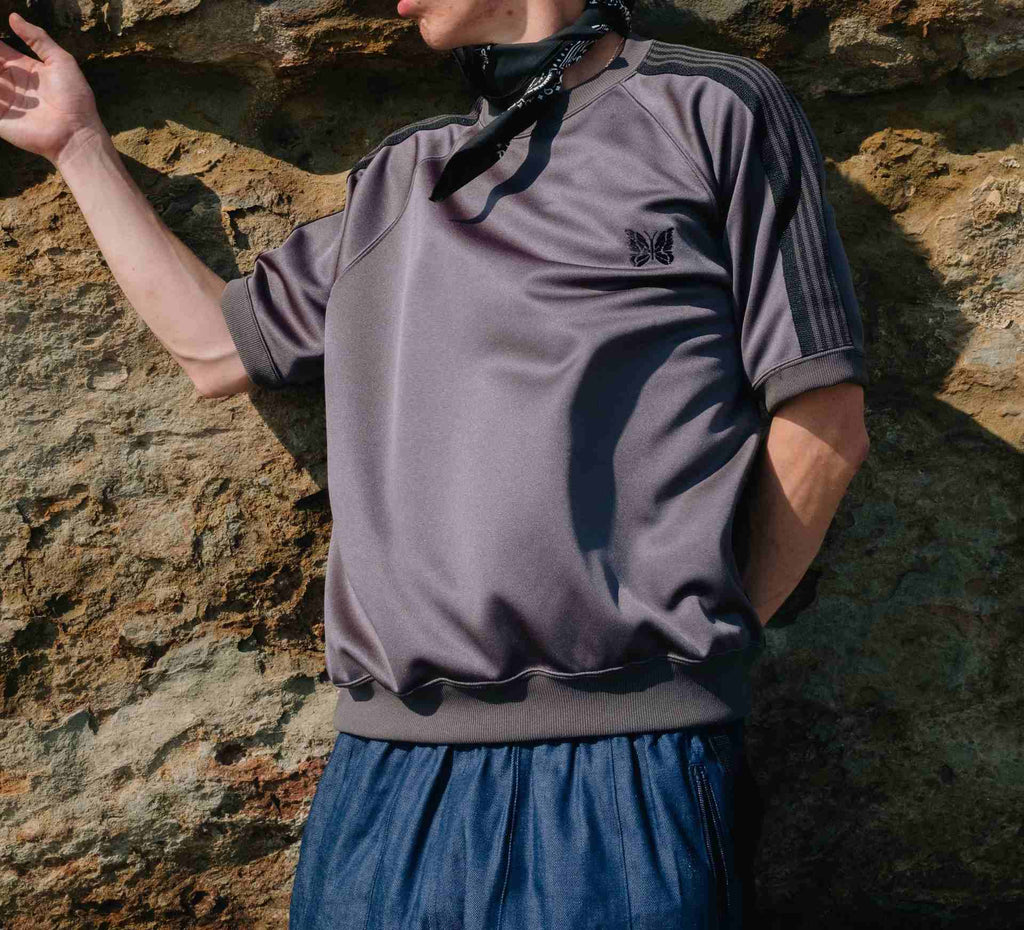 A custom model of the popular Needles track series, shortened to a short-sleeve version with a crew neck.