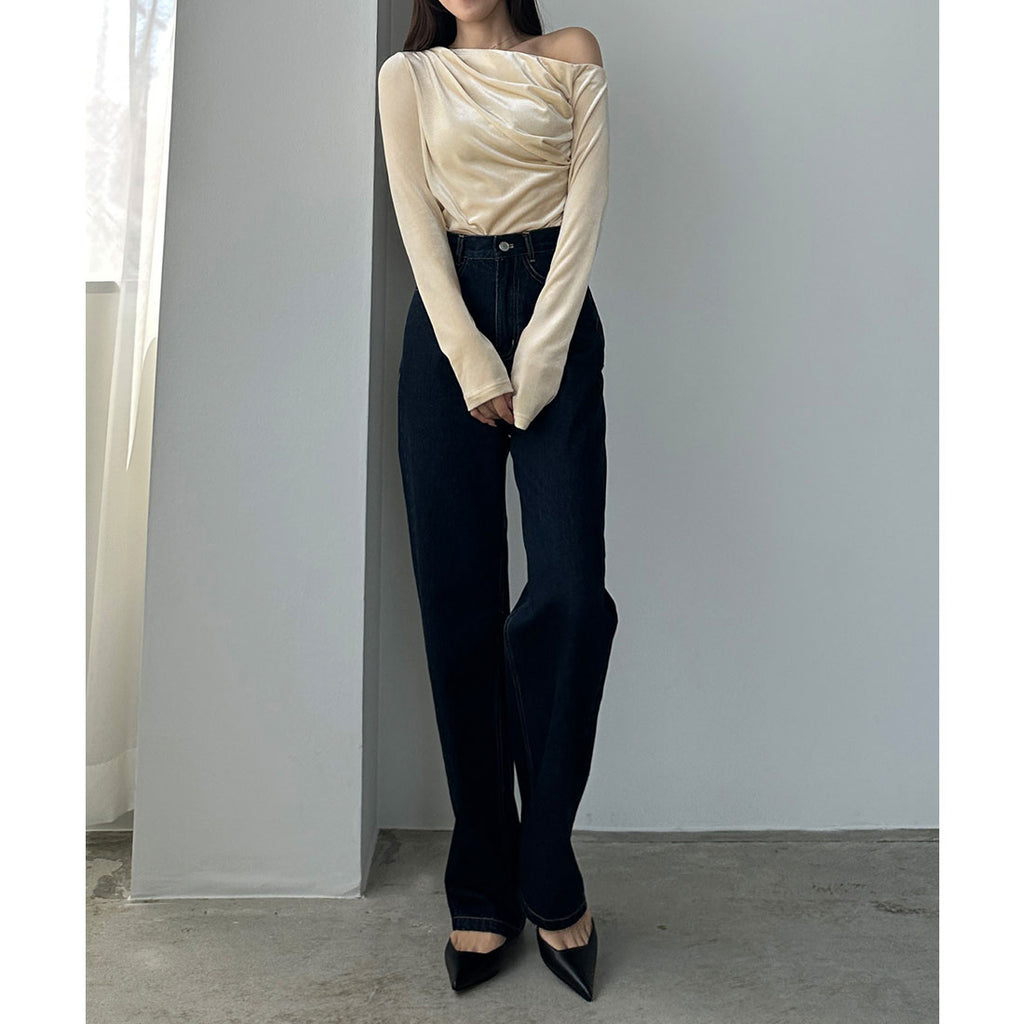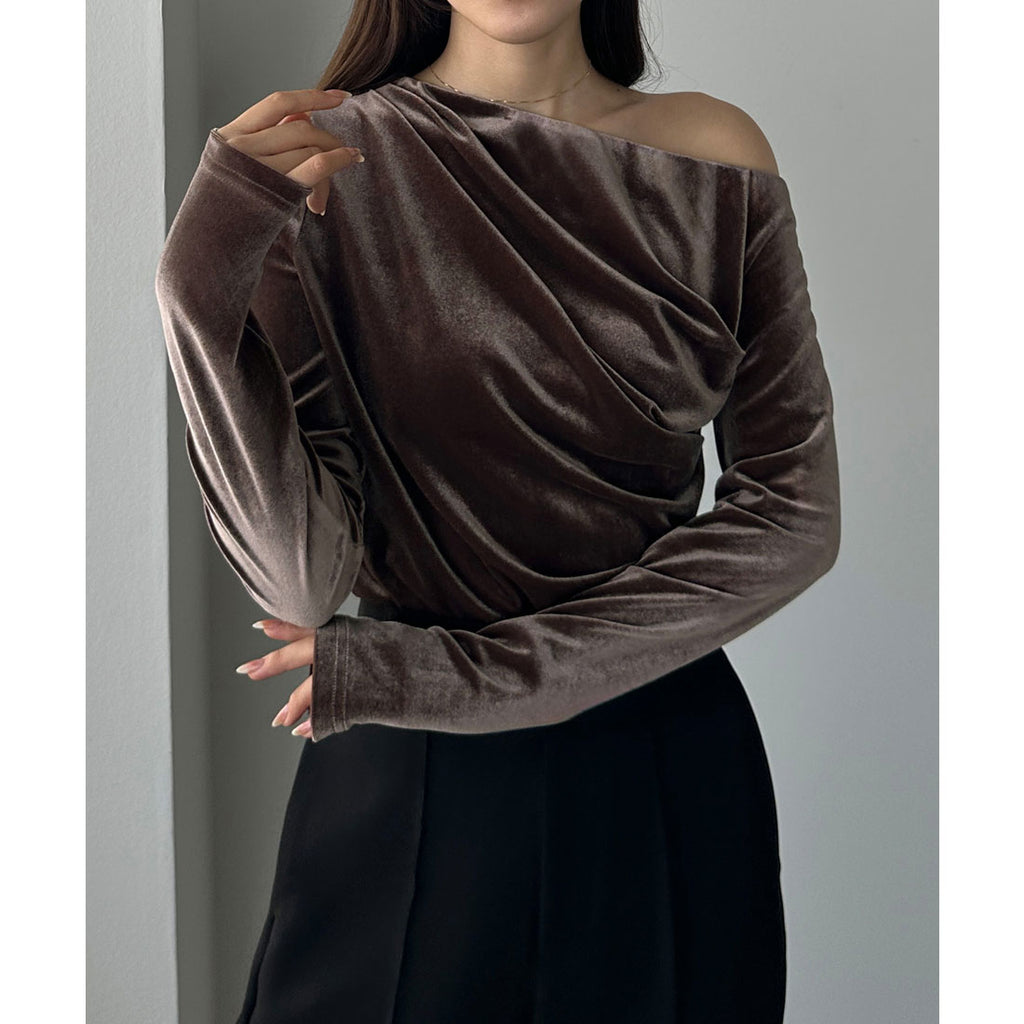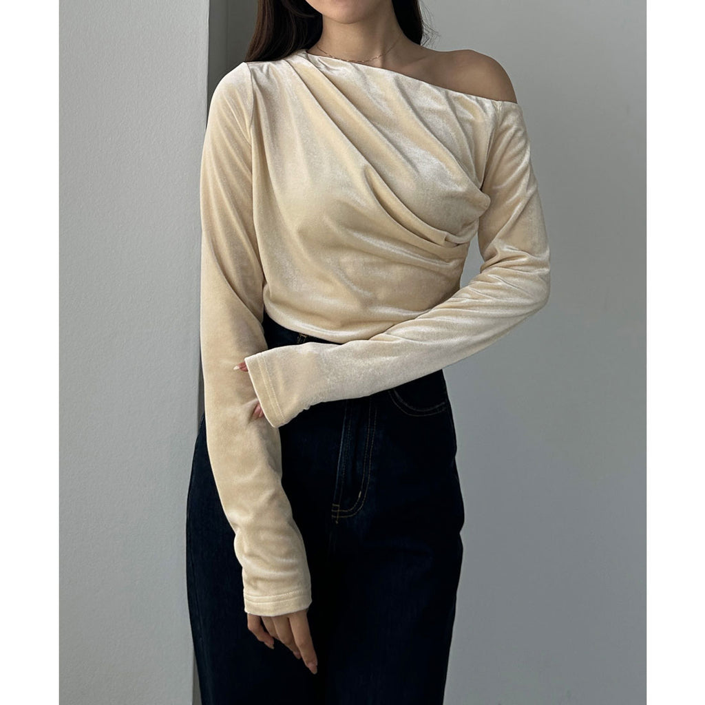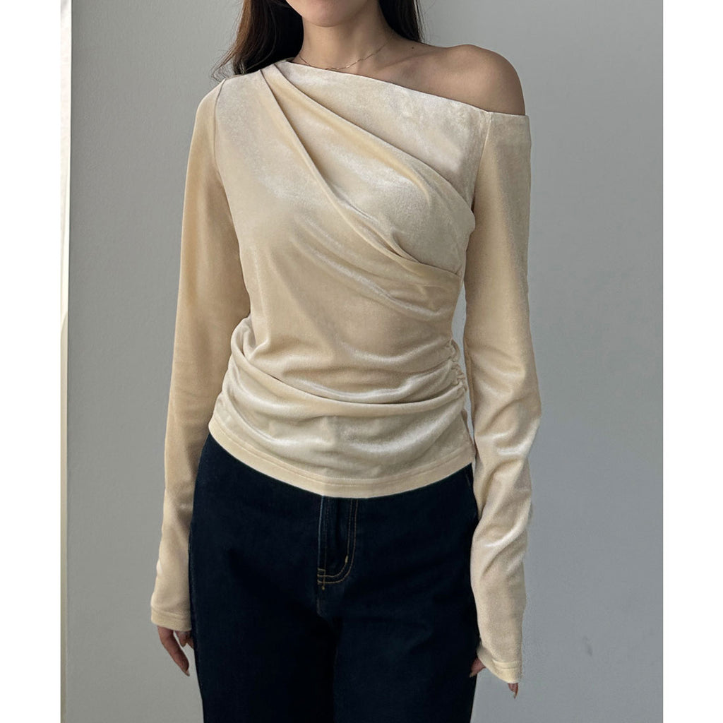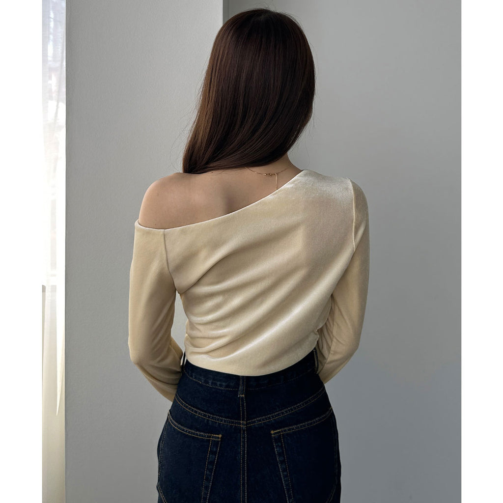 An asymmetrical one-shoulder design that is charming in this top.