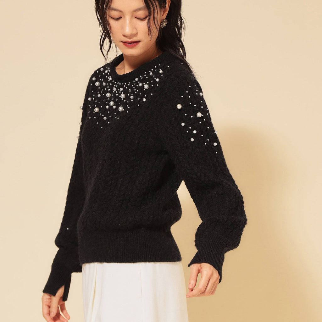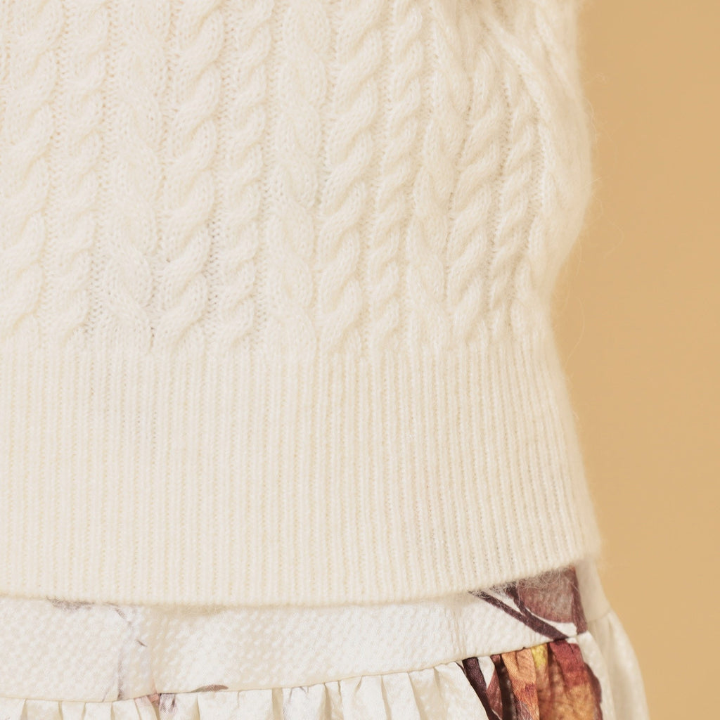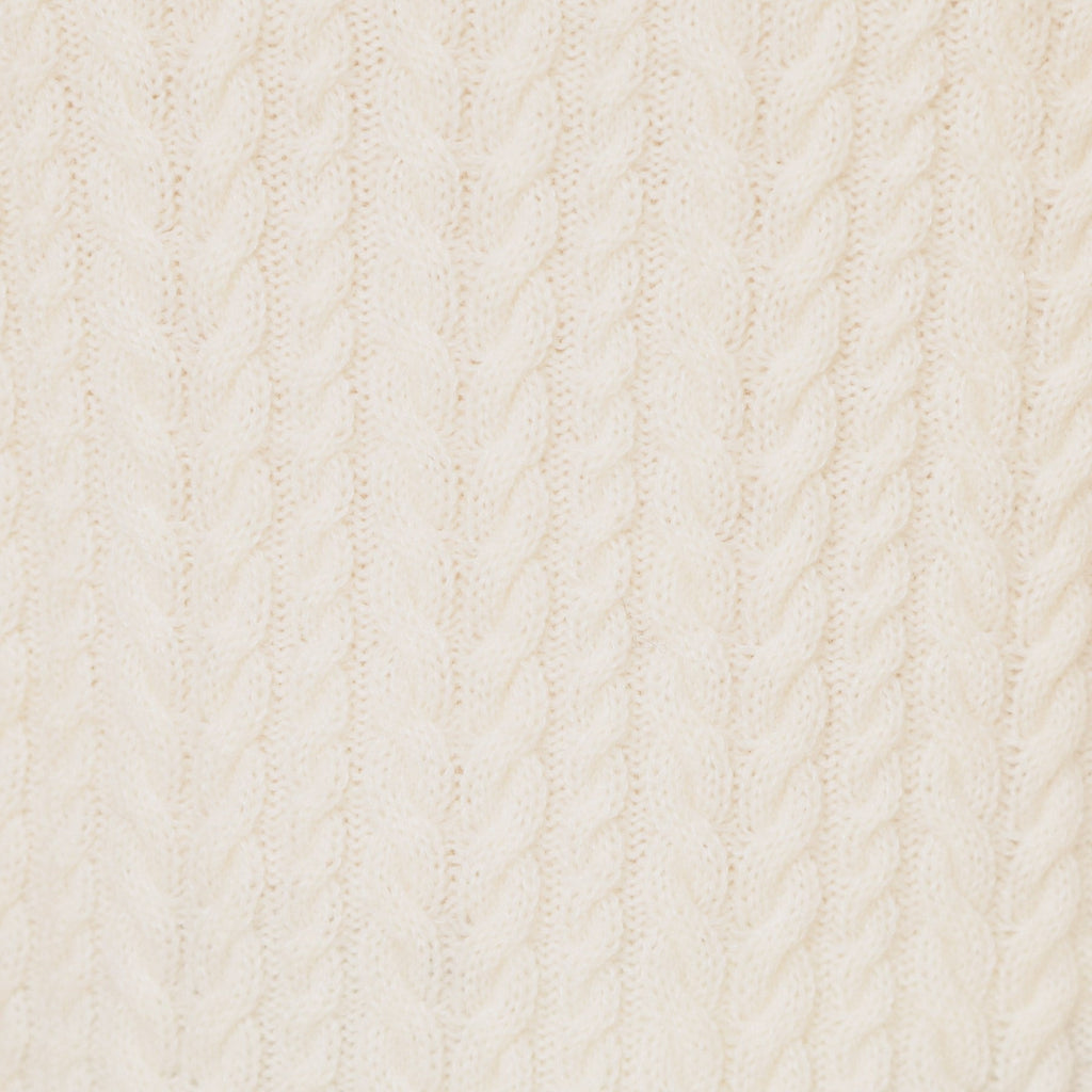 Knitted with spun wool yarn and hairy yarn, the cable pattern creates a three-dimensional feel and warmth.