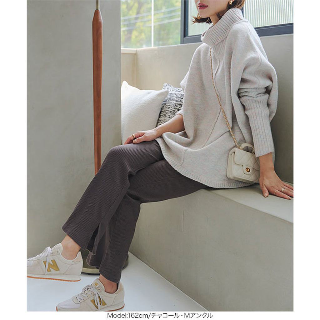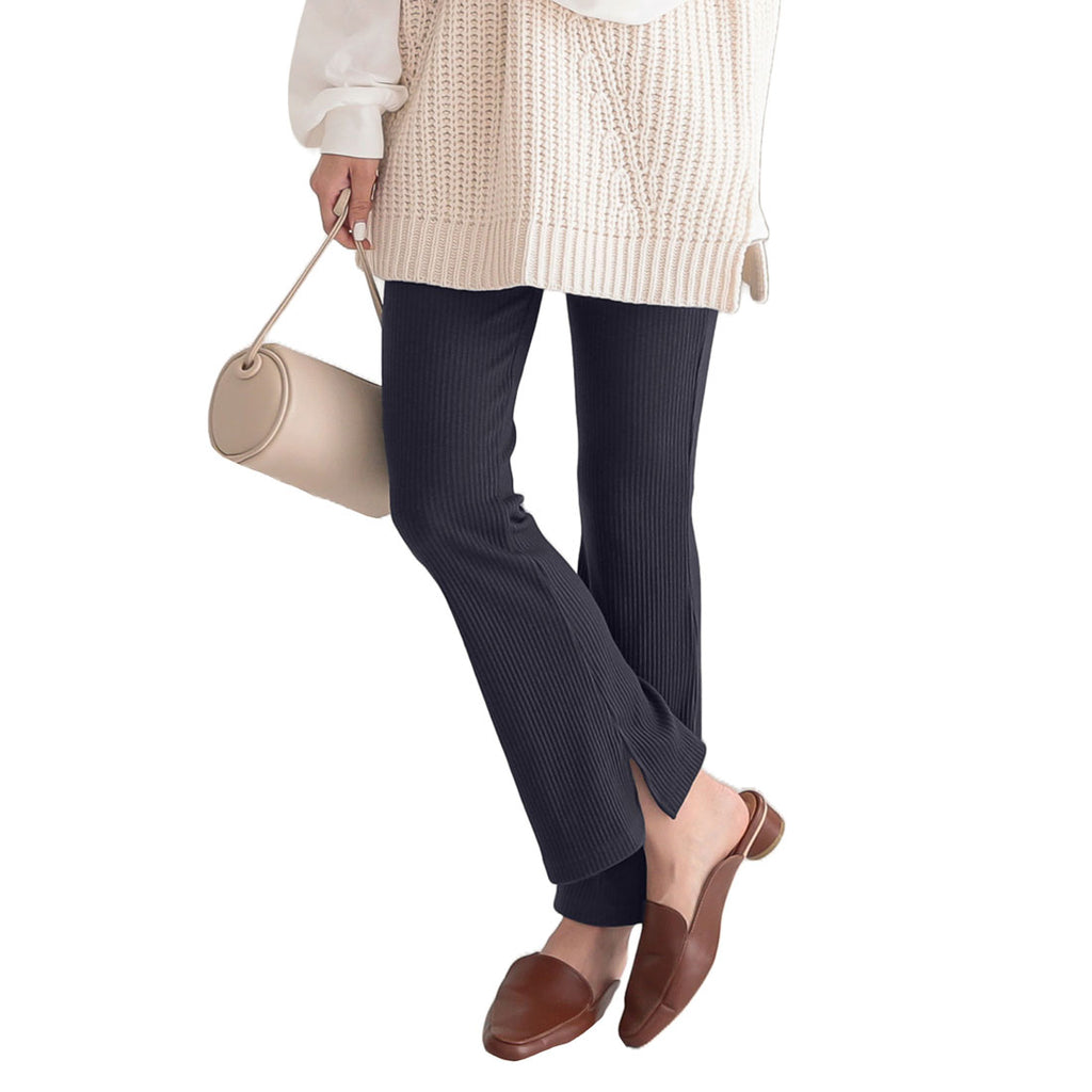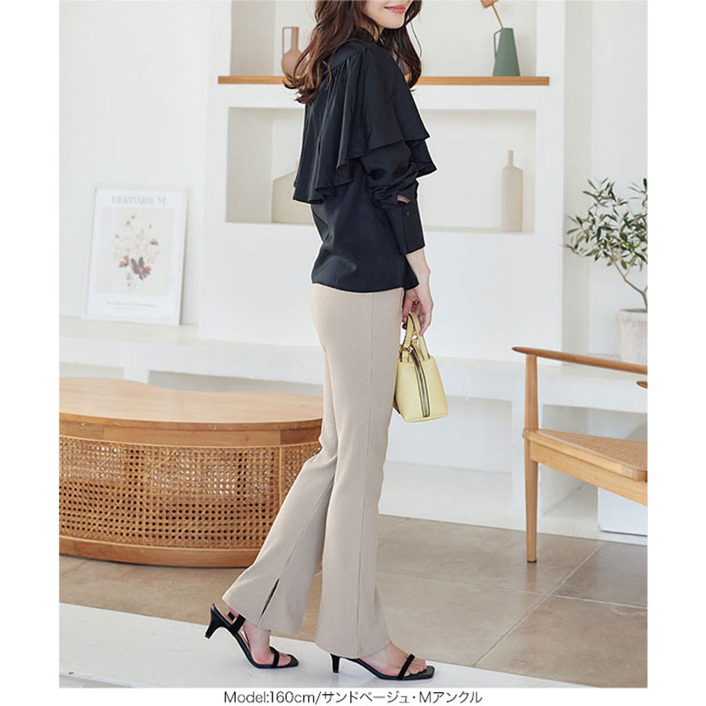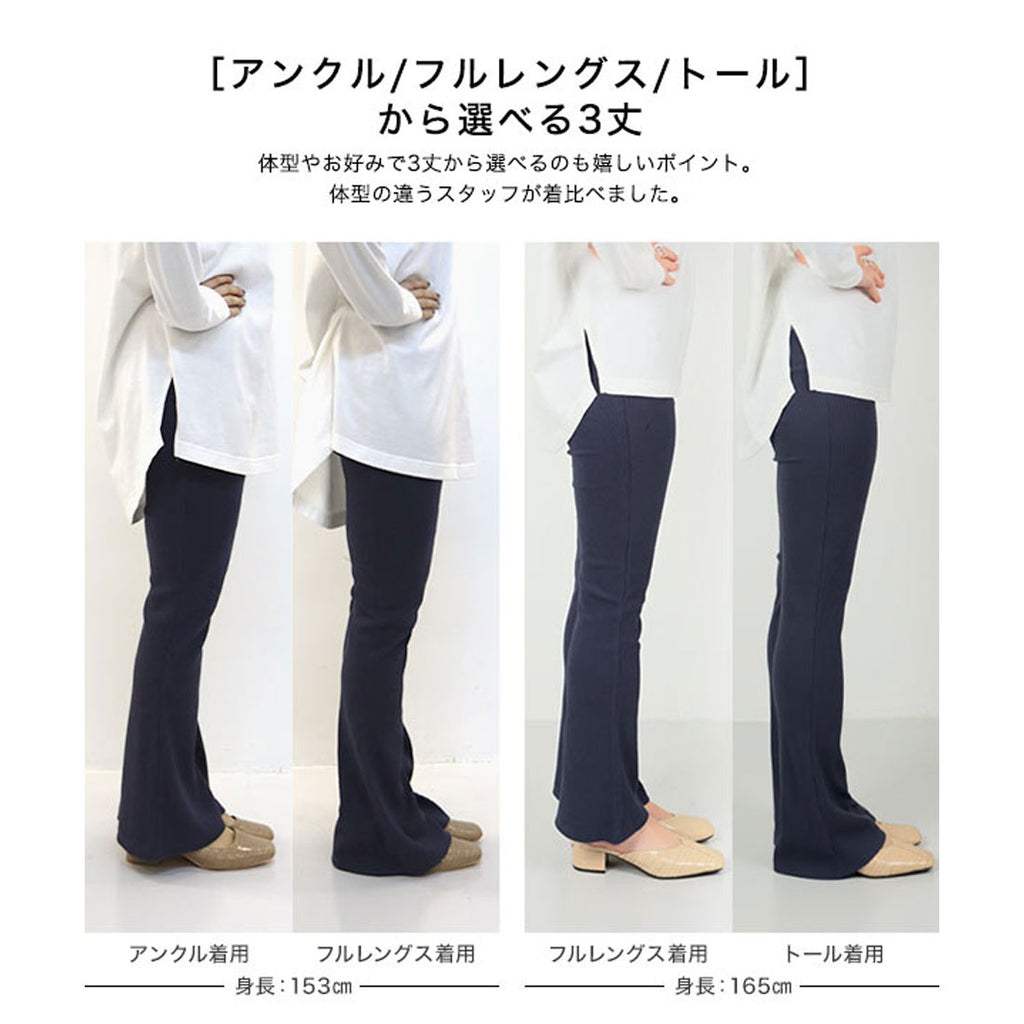 Slimming Rib Pants for Women Flare Pants Pants L M Side Slit Tall Height Longer Inseam 80 Petite Tall Size Large Size Small Size Petite Longer Shorter Rib Slim Fit Plus Size [M2807]