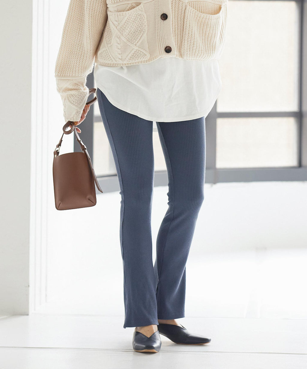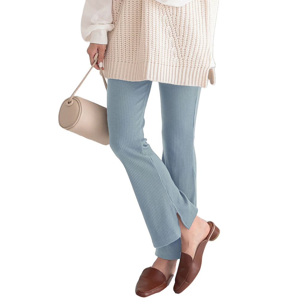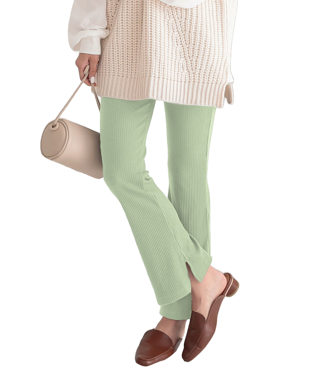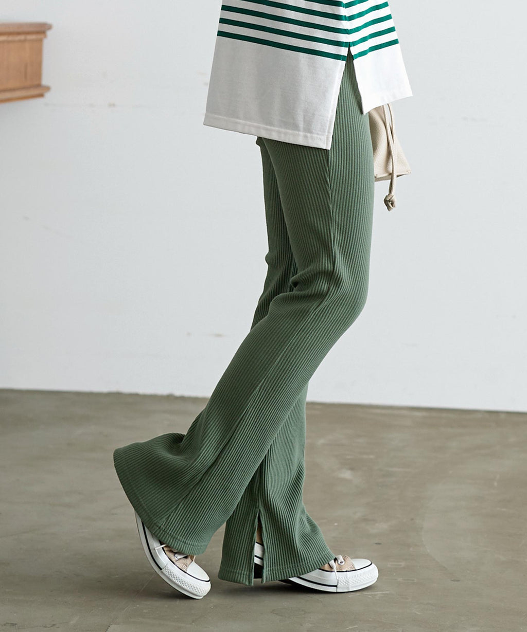 KoBe LETTUCE KOBE LETTUCE Kobe Lettuce [Selectable 3 Lengths] Side Slit Flare Rib Pants【M ankle】 [M2807](Heather Gray).