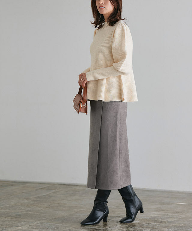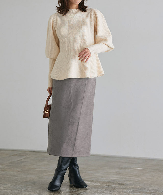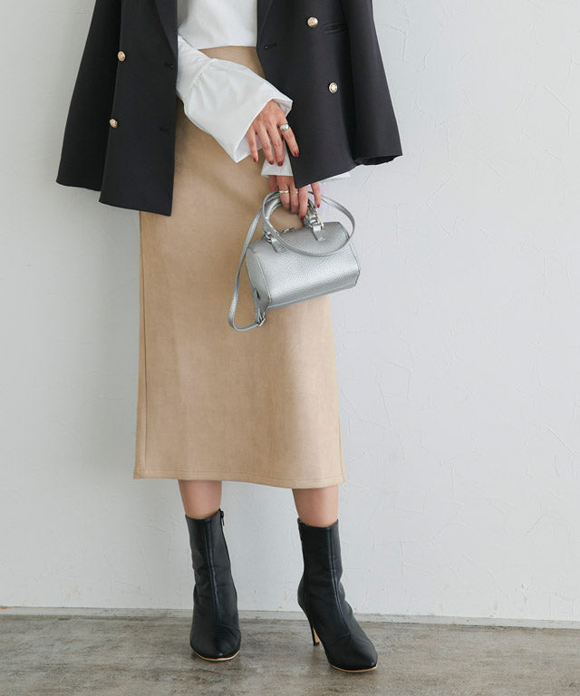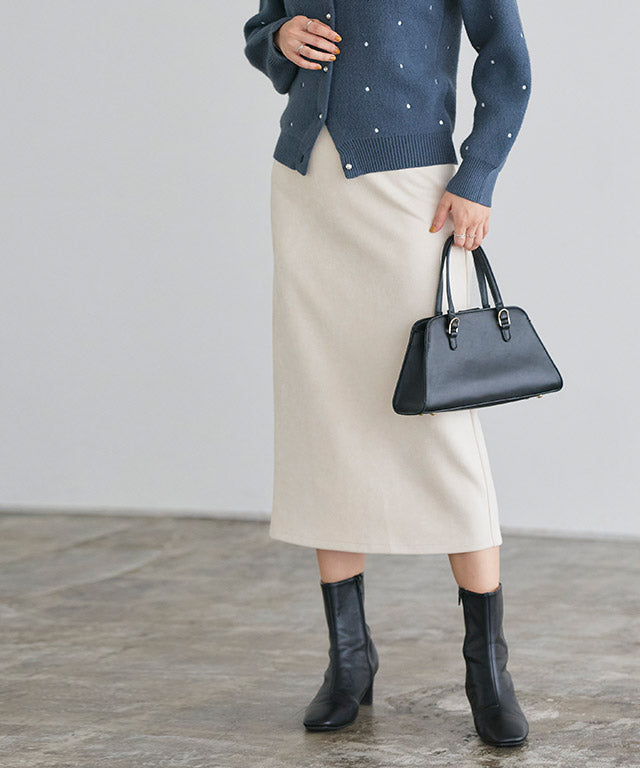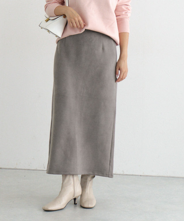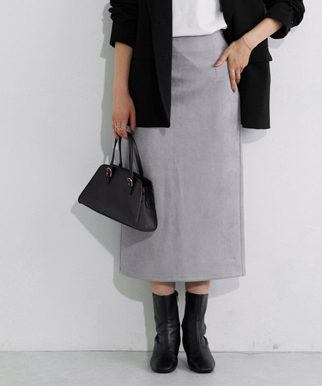 "Cut Suede Tight Skirt" that creates a calm atmosphere.