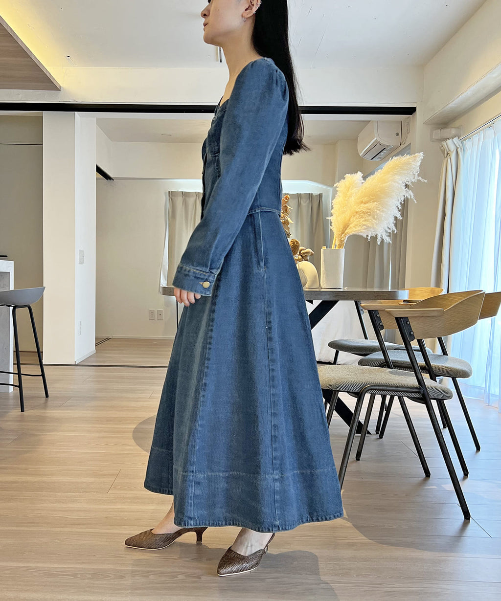 Jewelobe Bustier jacket x flare skirt denim set