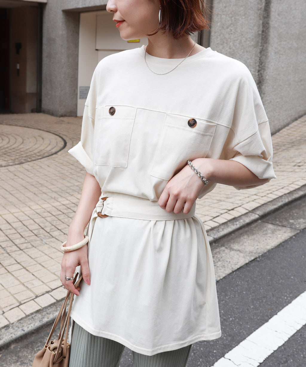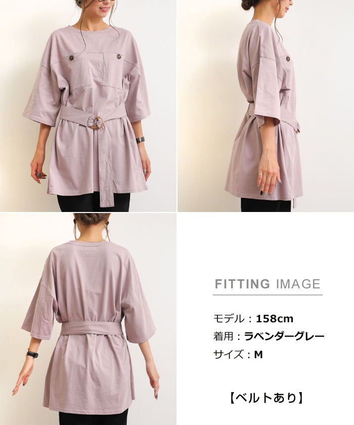 andme Short-sleeved T-shirt tunic with two chest pockets and a belt