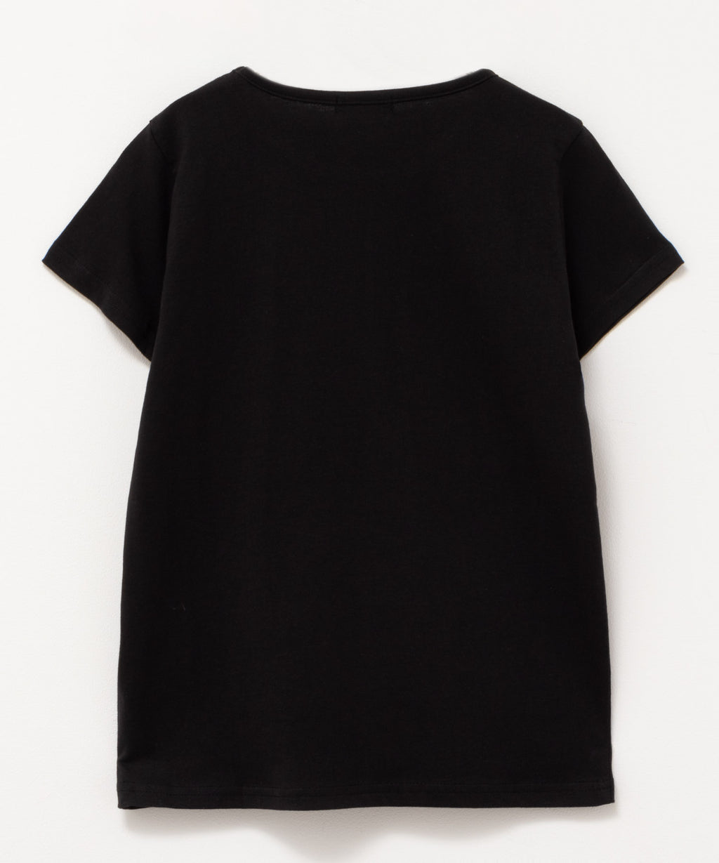 This is a basic silhouette short-sleeve T-shirt in regular length.