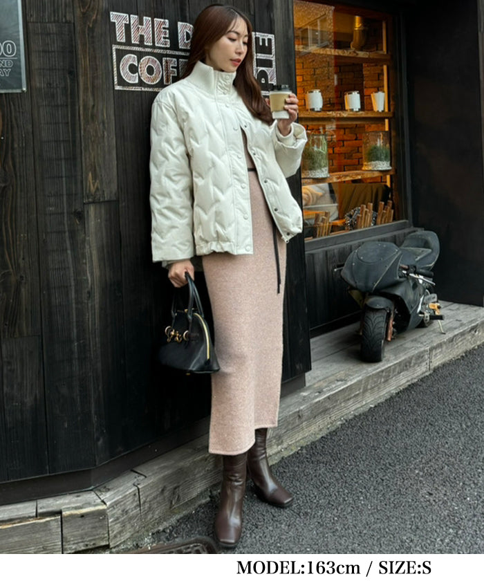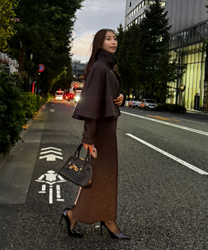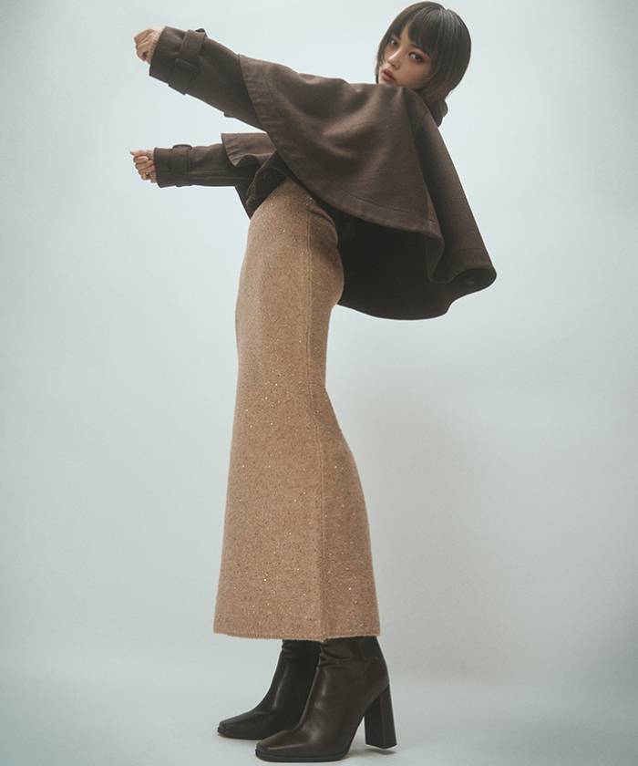 By adding a back slit to the maxi length, it allows for easy movement even when paired with long boots, adding a sense of effortless style.