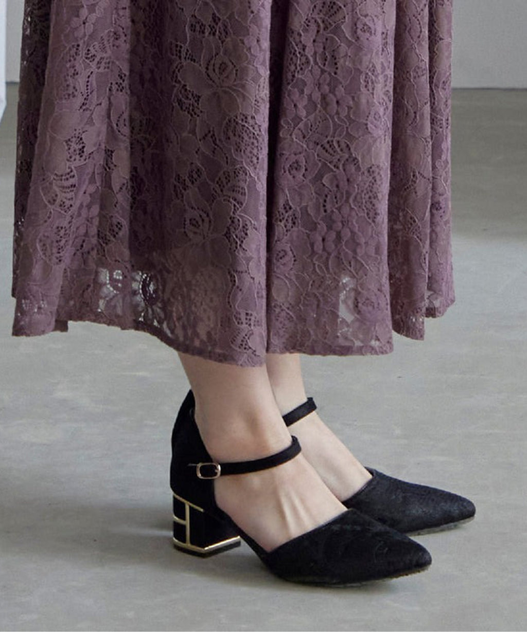 Metoi Chunky Heel Lace Pumps Occasion Invitation Elegant Formal