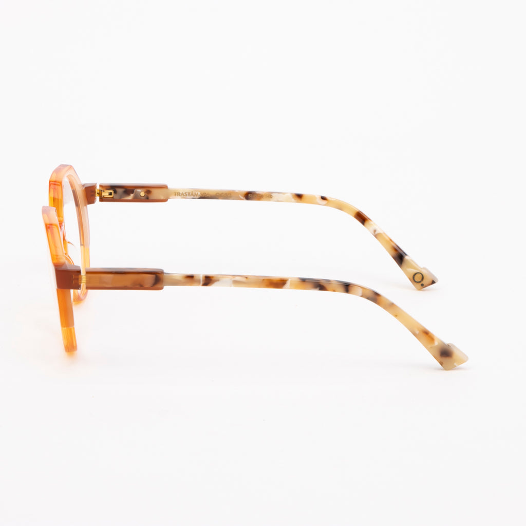 The combination of bright coloring and tortoiseshell-style temples adds a playful touch.