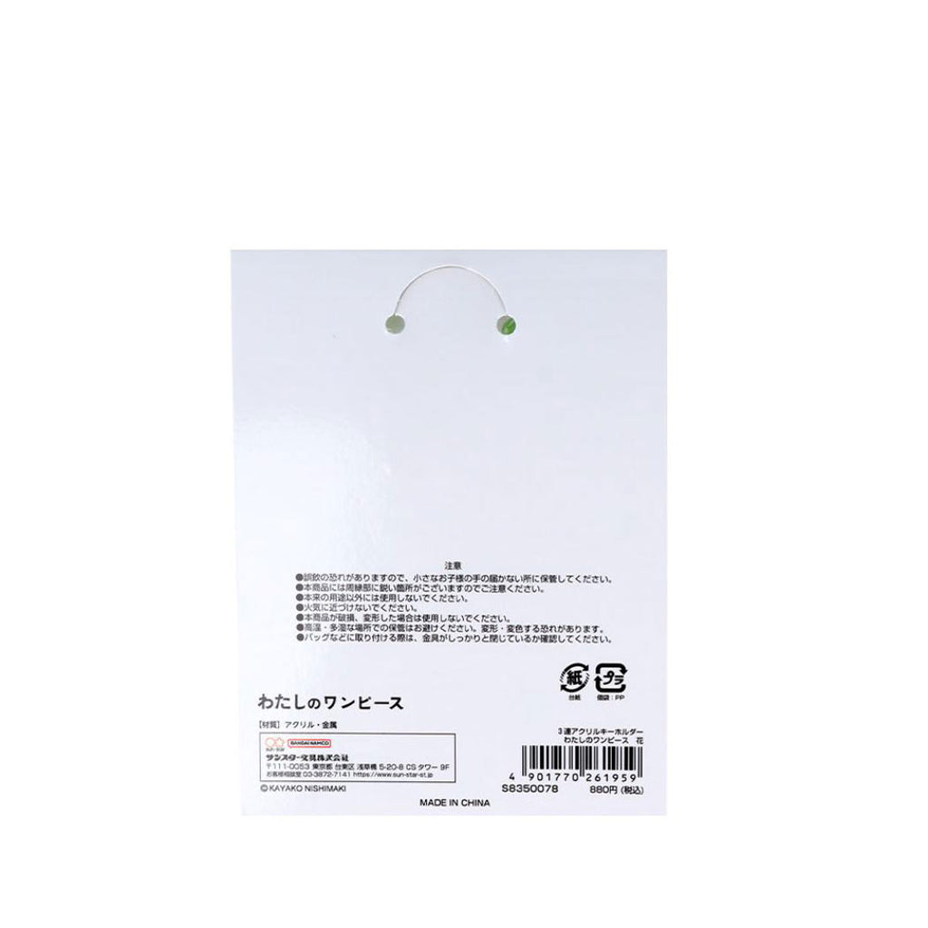 This is a keychain with three die-cut acrylic parts that have a strong presence.