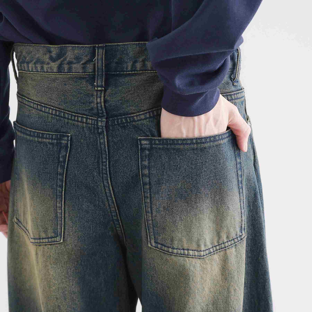 Processing involves multiple steps such as washing, sandblasting, and color washing, with a thorough commitment to detail.