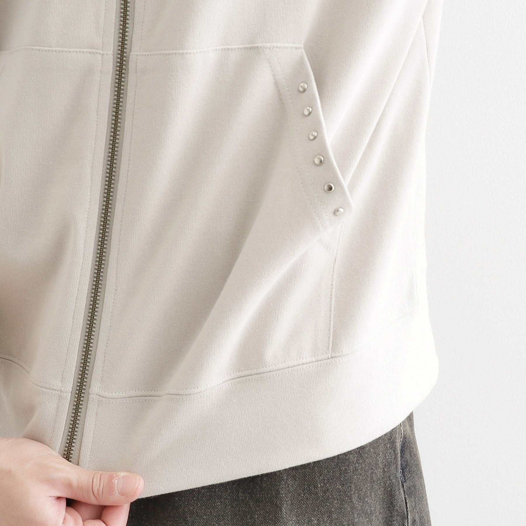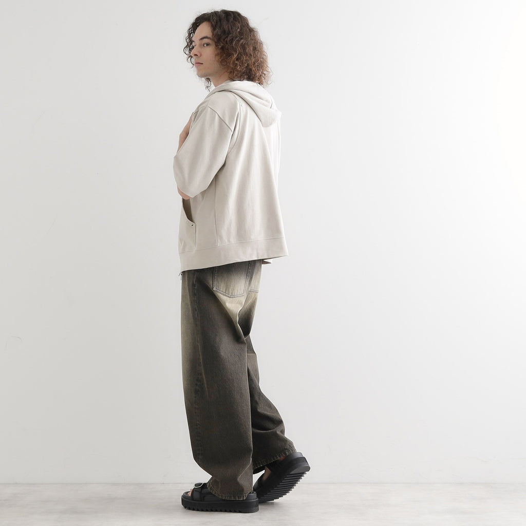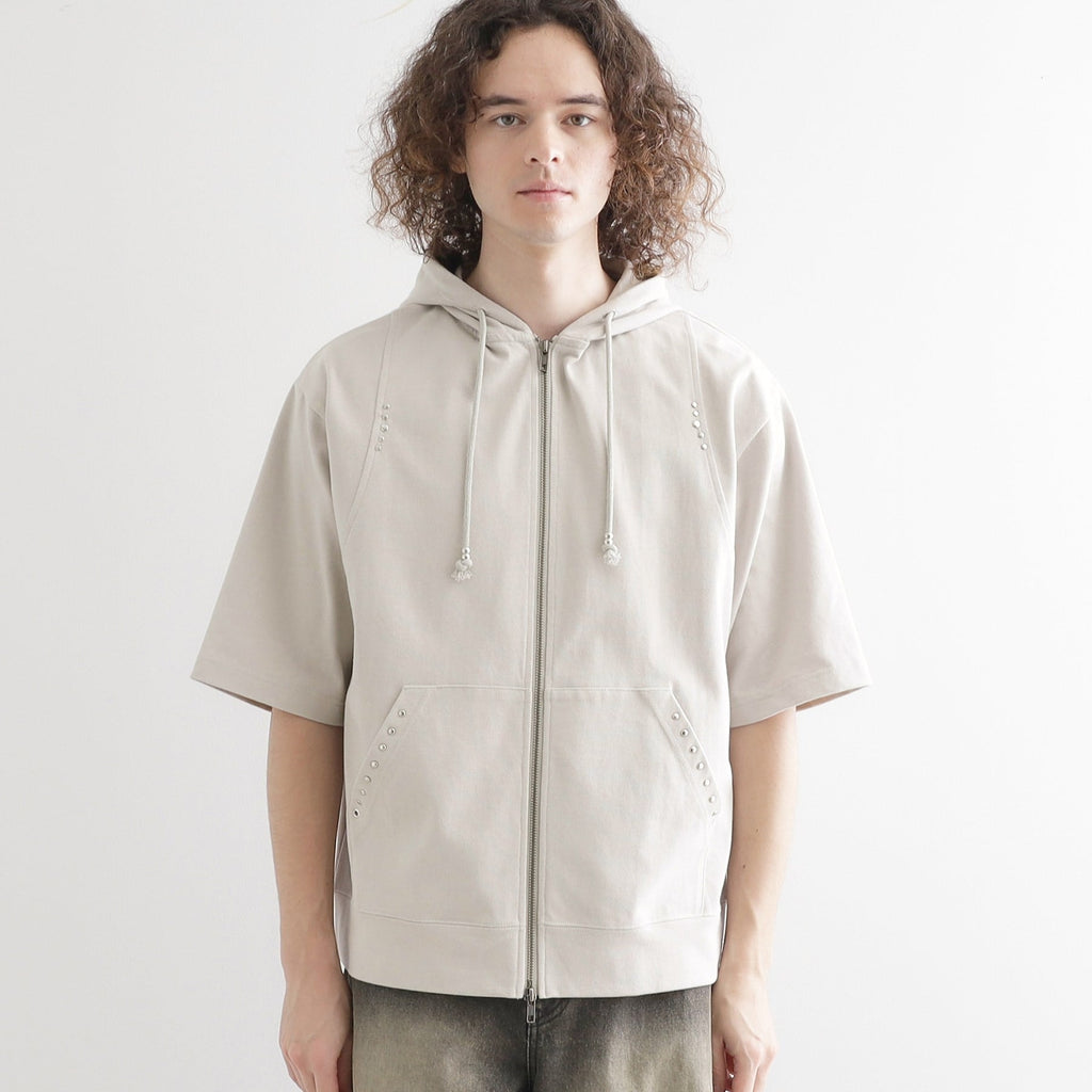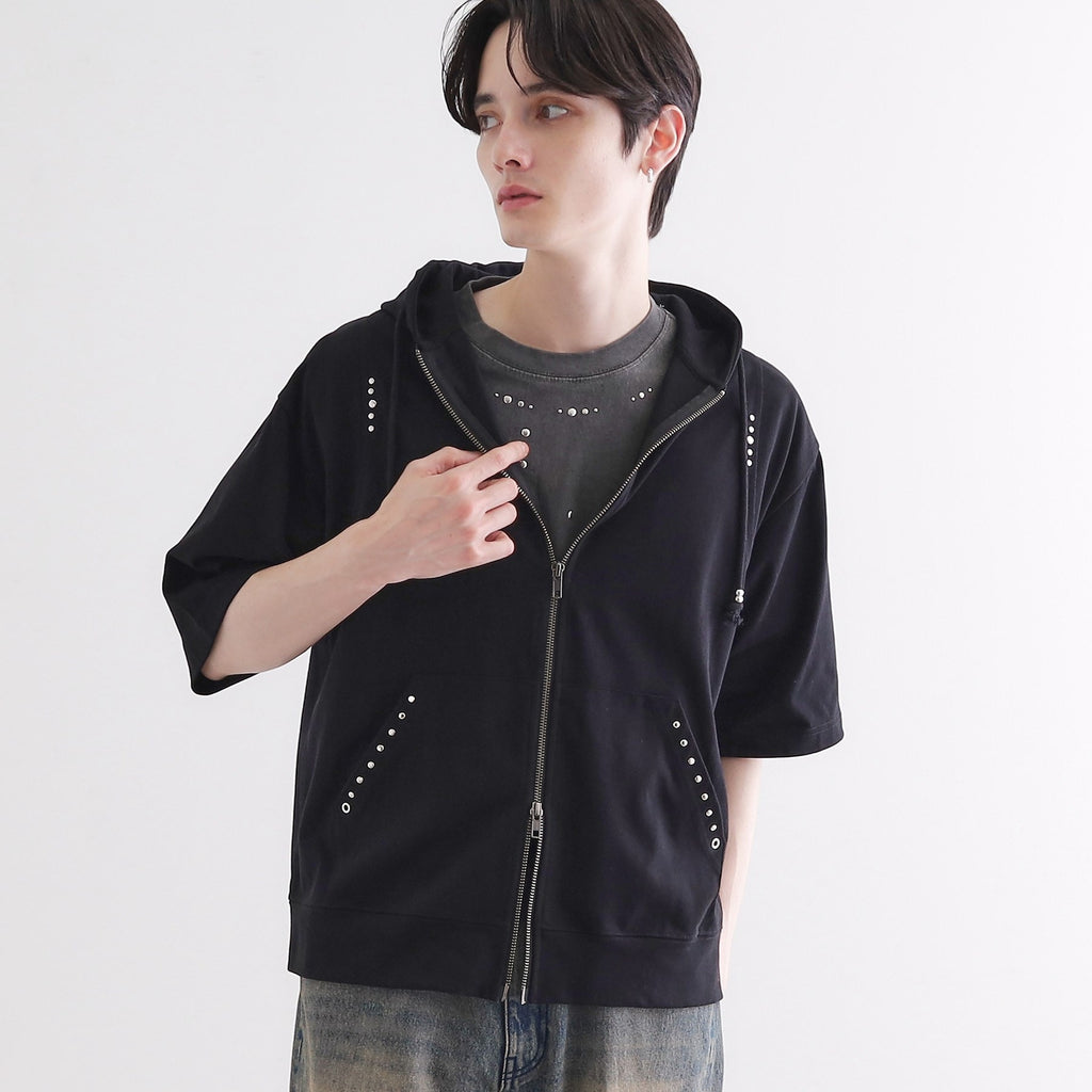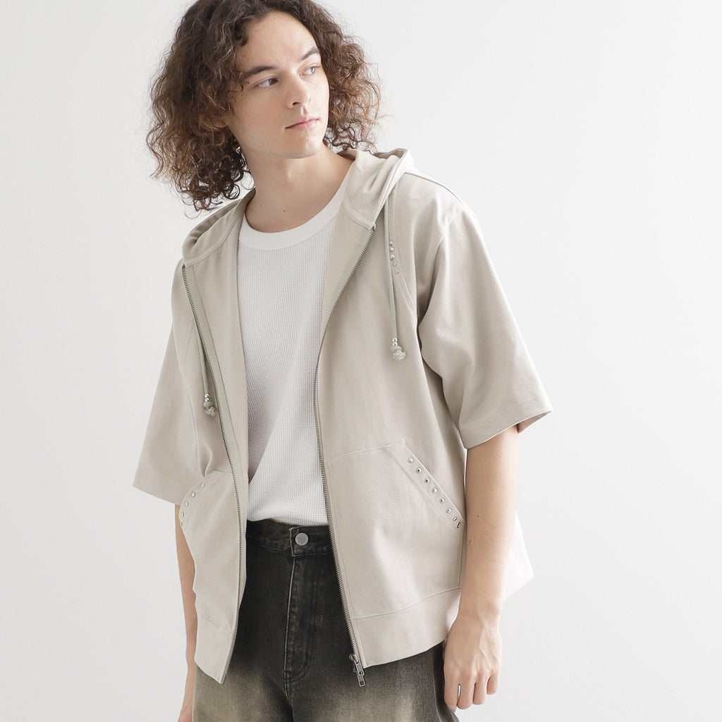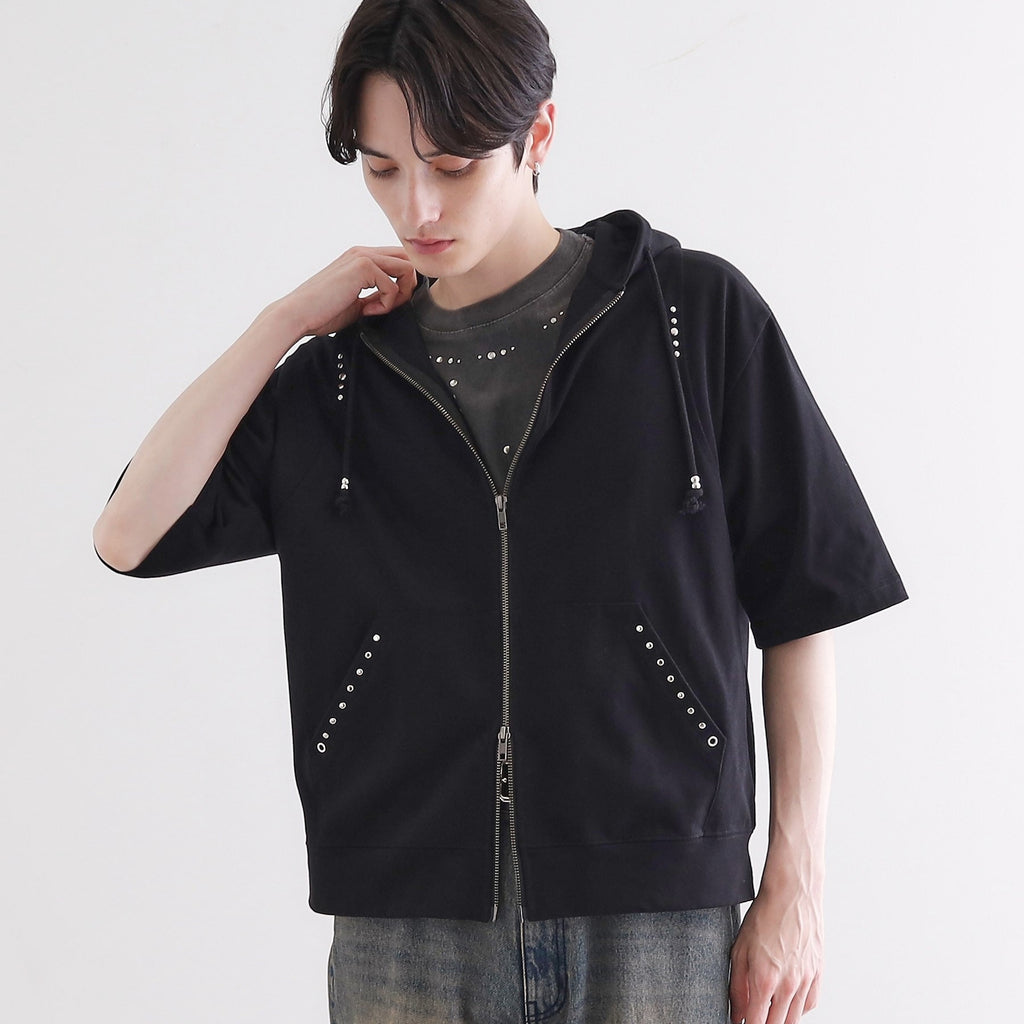 The width and shoulder width are moderately relaxed, and the length is kept short with a small overall fit, creating a compact look when worn.
