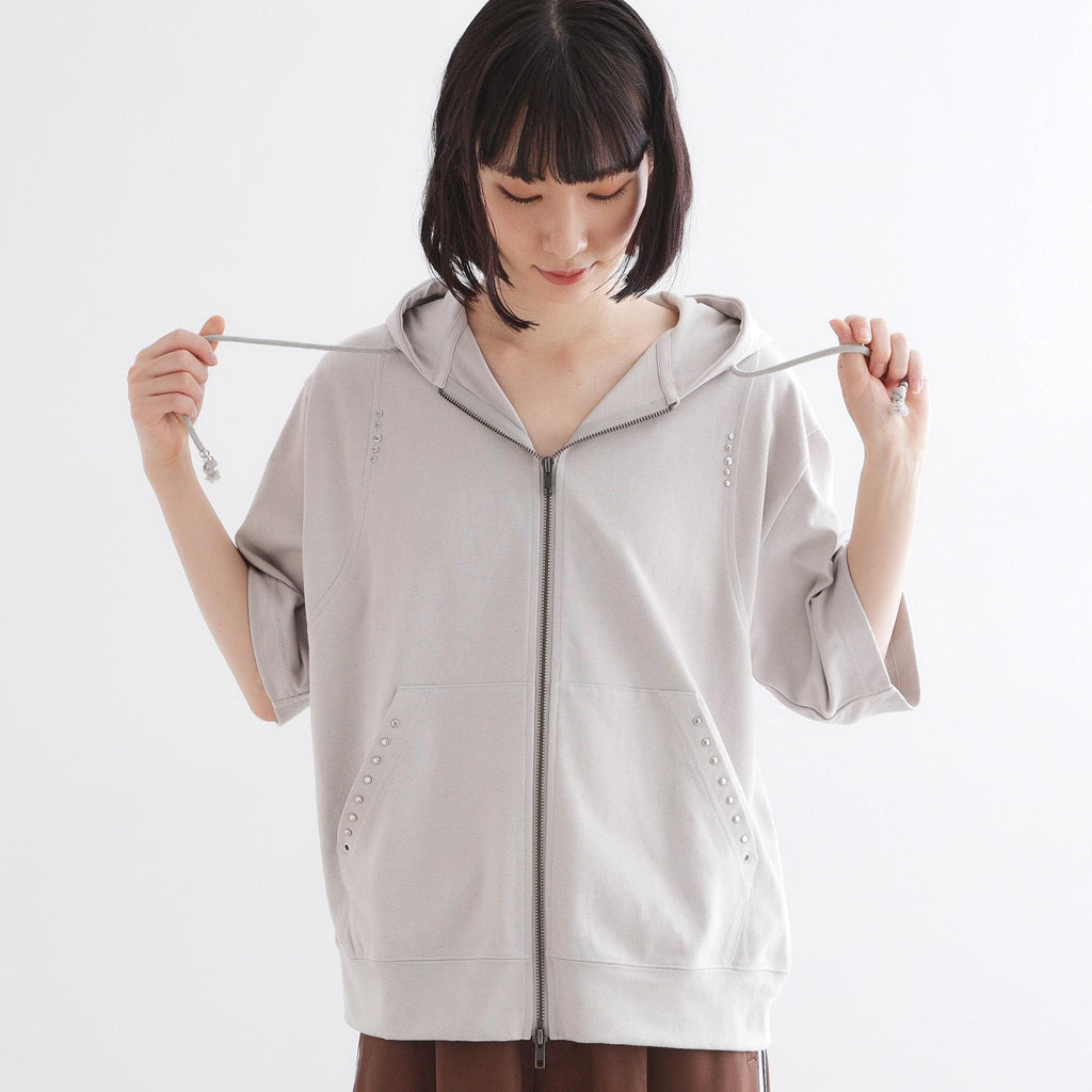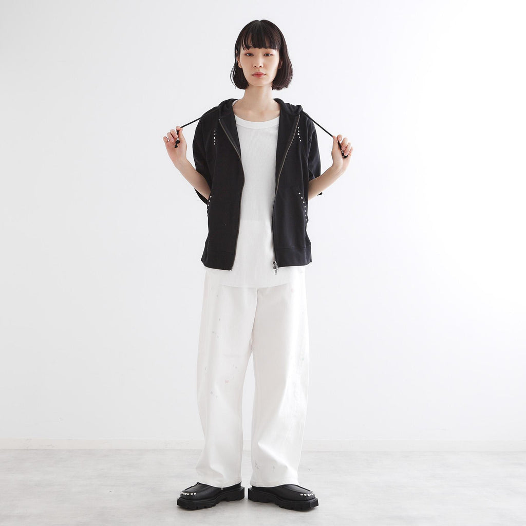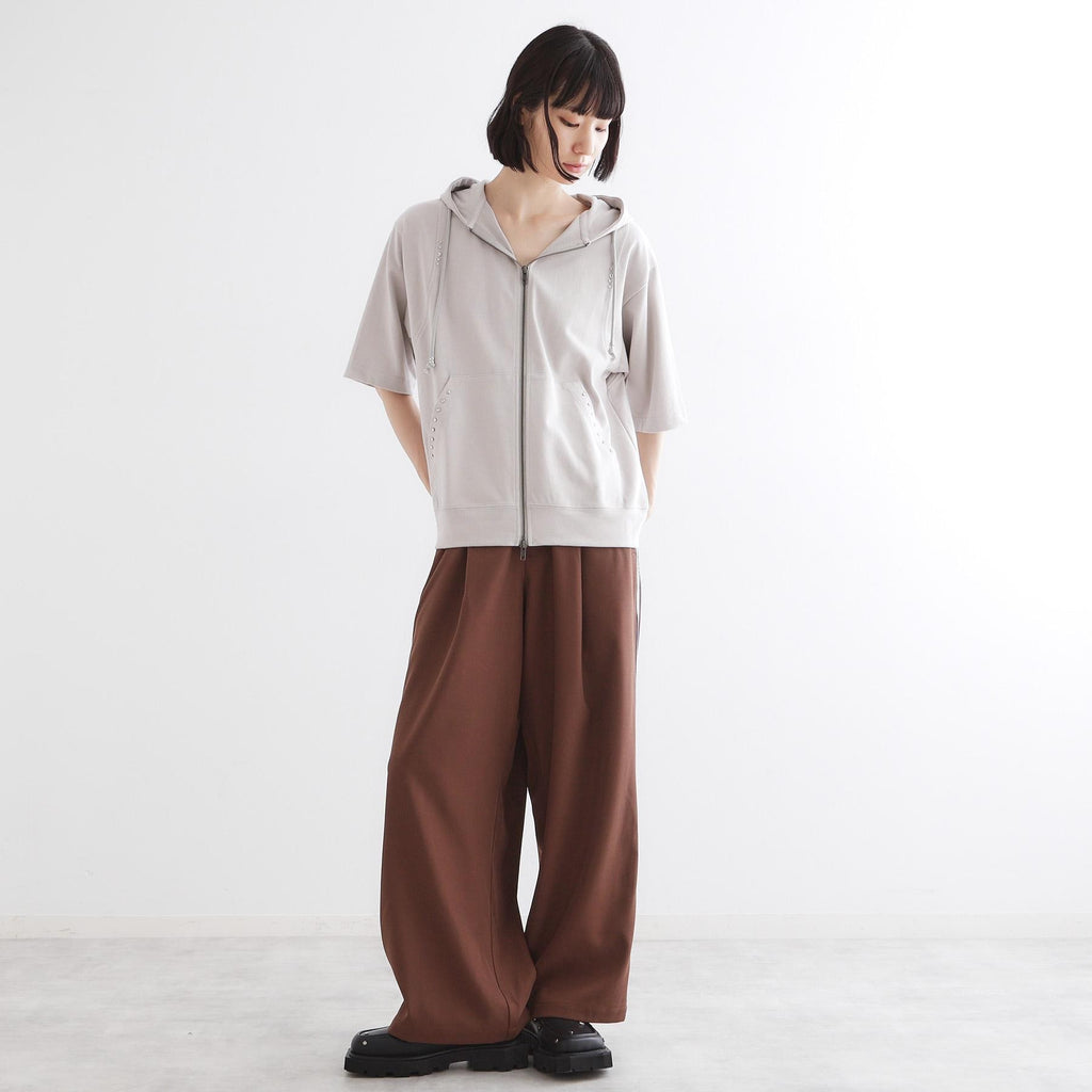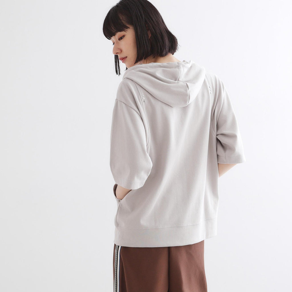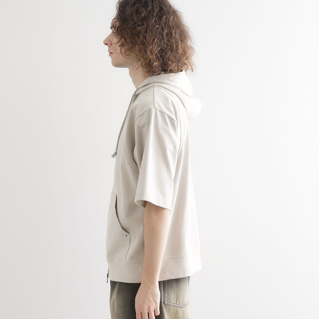 The width and shoulder width are moderately relaxed, and the length is kept short with a small overall fit, creating a compact look when worn.