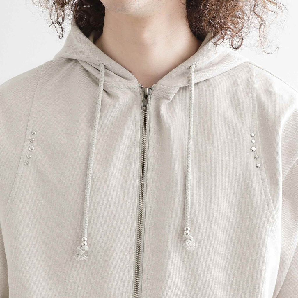 Features three-dimensional color blocking and studs reminiscent of Western shirts, incorporated into the hoodie.