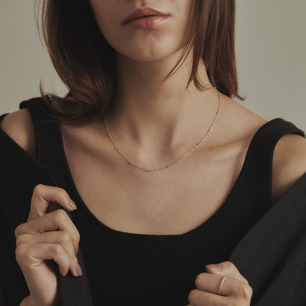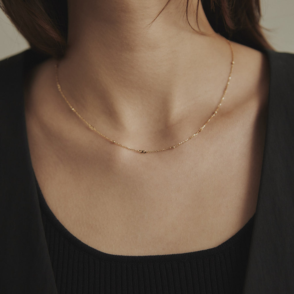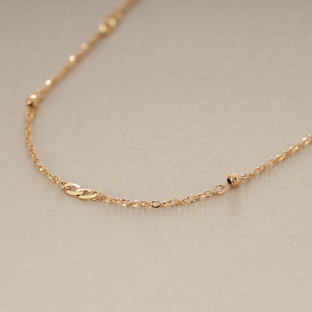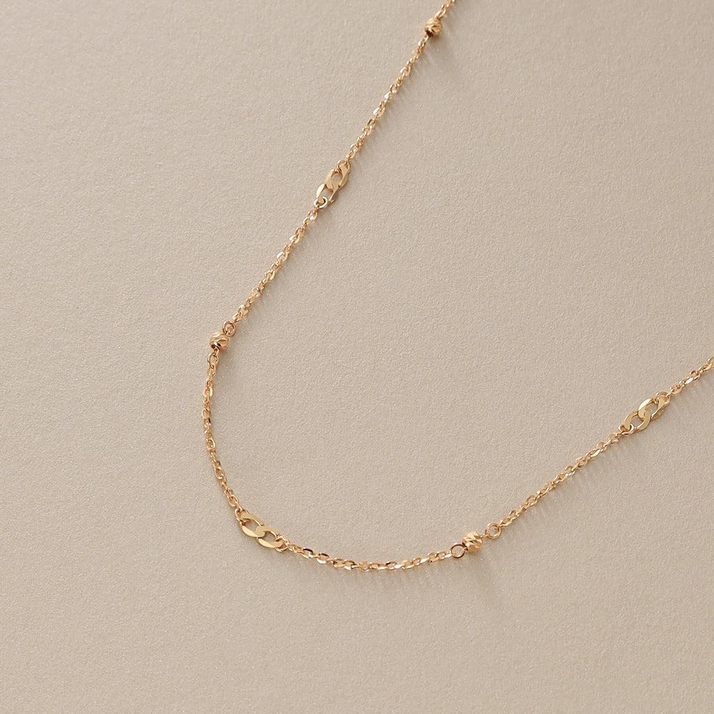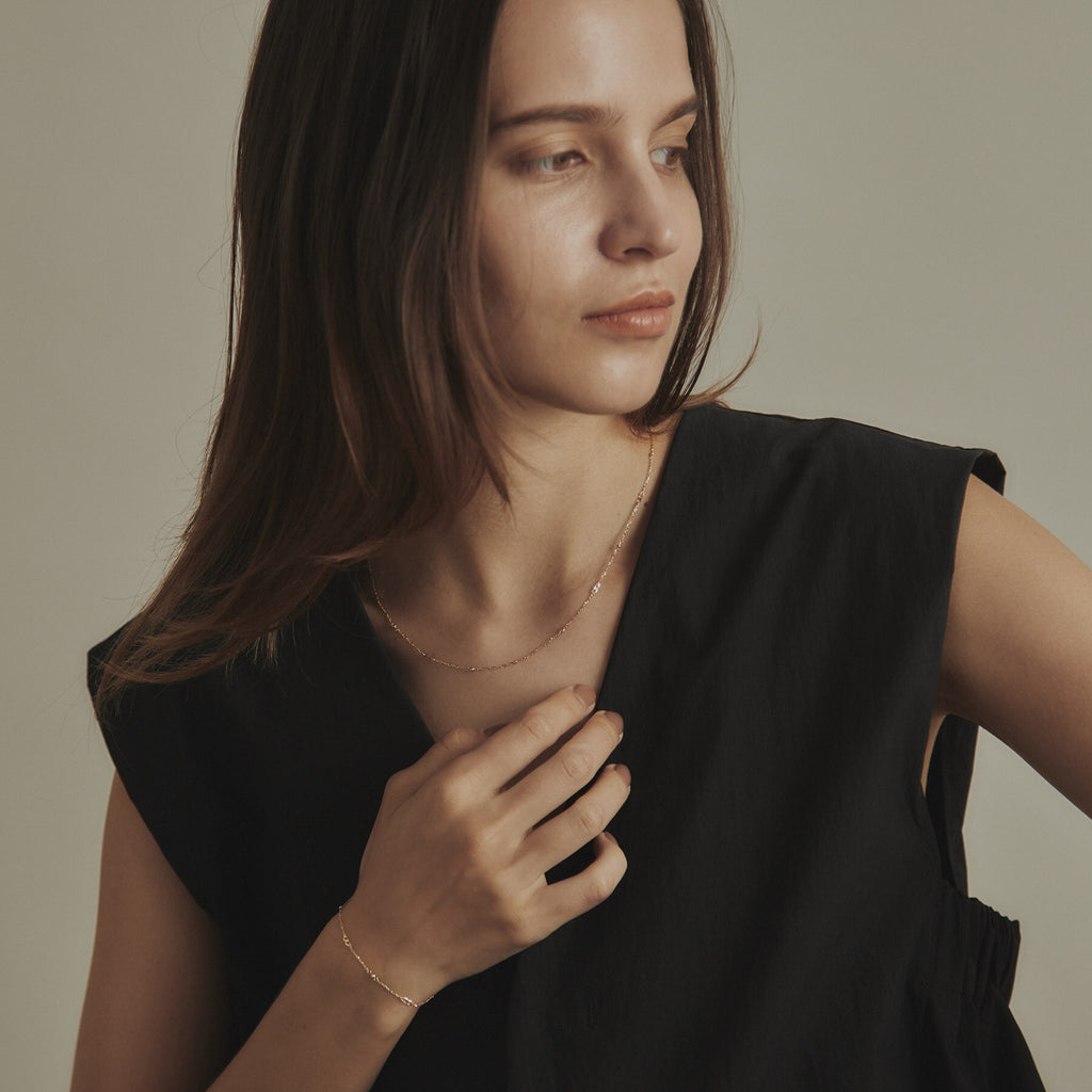 COCOSHNIK K18 Flat Chain × Honey Cut Beads Necklace