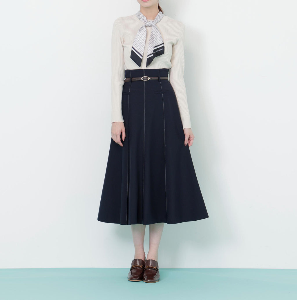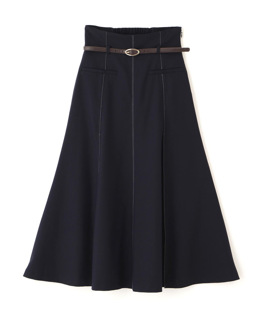 Semi-flare skirt with a thin belt