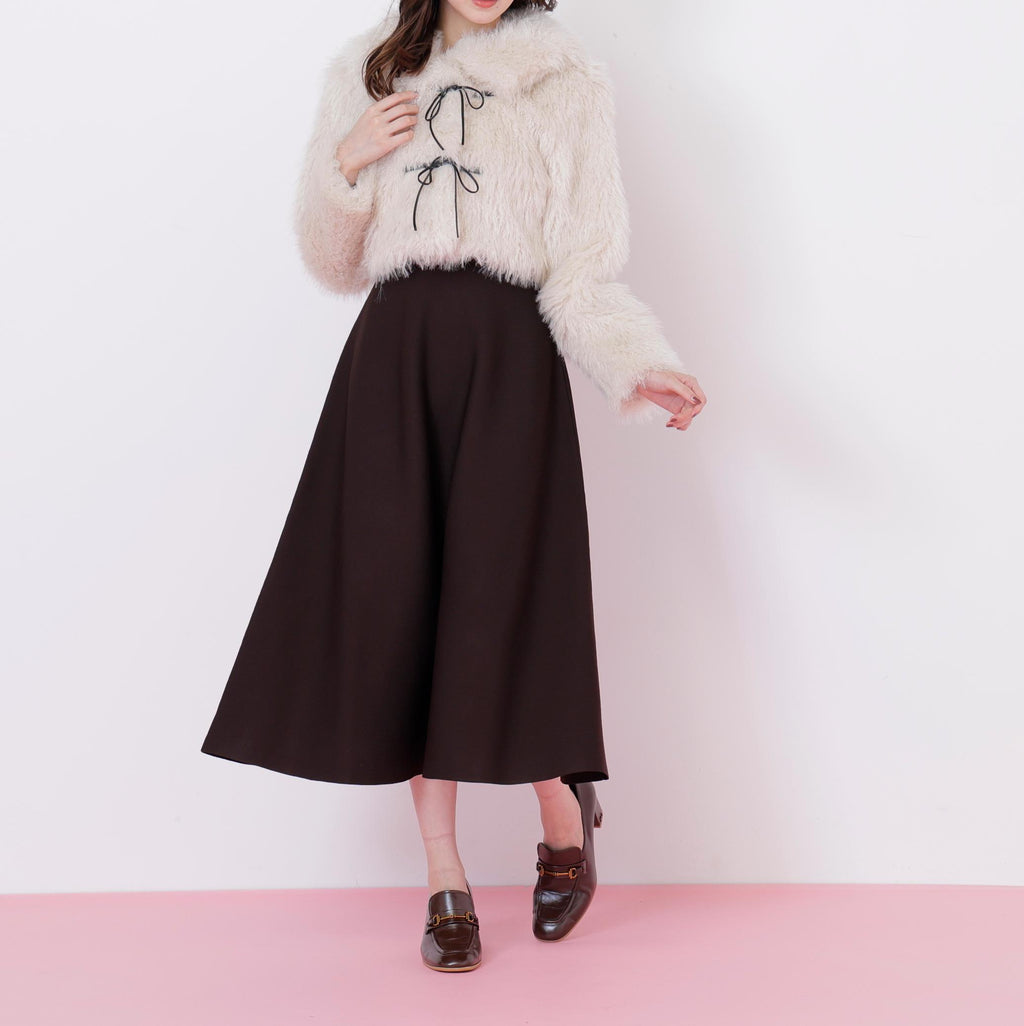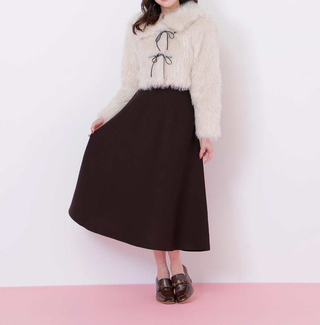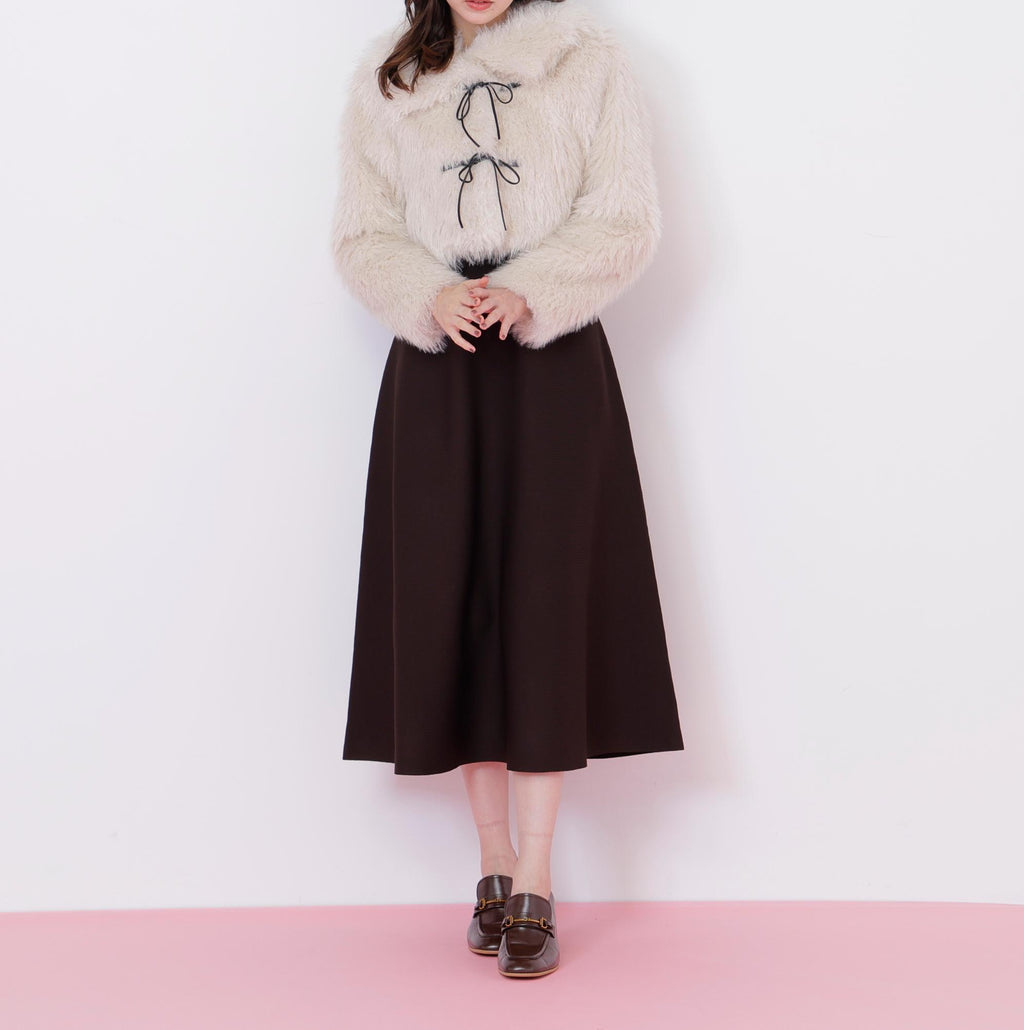A short-length blouson made with trendy, long-haired, curly faux fur. It features a faux leather ribbon detail in a duffle coat style design. The faux leather ribbon is decorative, and the front buttons make it easy to put on and take off, which is a key point. The large collar can create a face-enhancing effect. To prevent it from looking bulky, it has a compact silhouette. *Please note that the color may appear different due to lighting during photography. Additionally, depending on your computer or smartphone environment, the product color may differ slightly from the images. Please understand this in advance. The color of the product can be referenced from the product single image. *Please note that the product images are samples, and there may be changes in color, size, or other specifications.