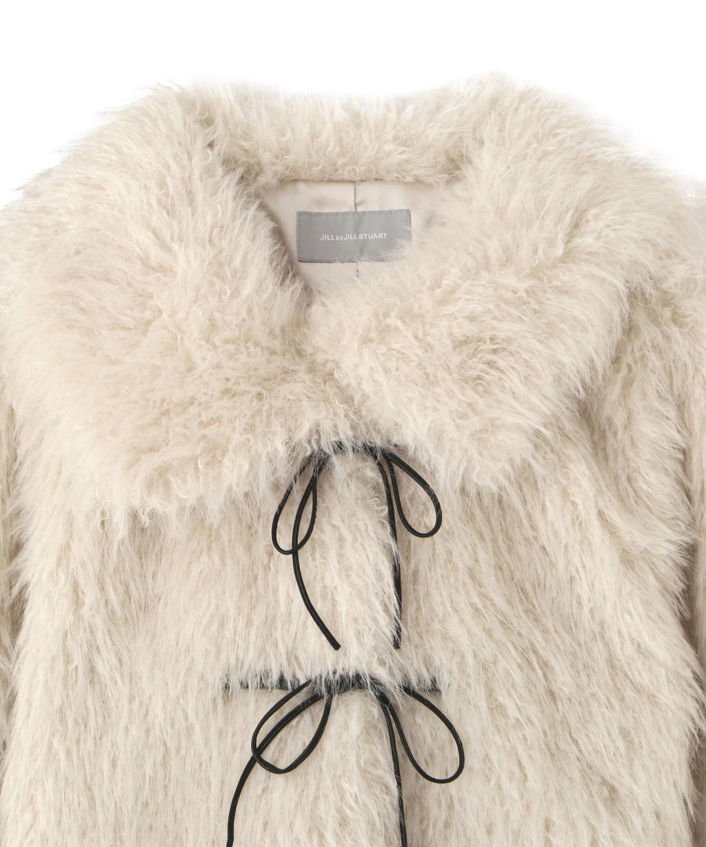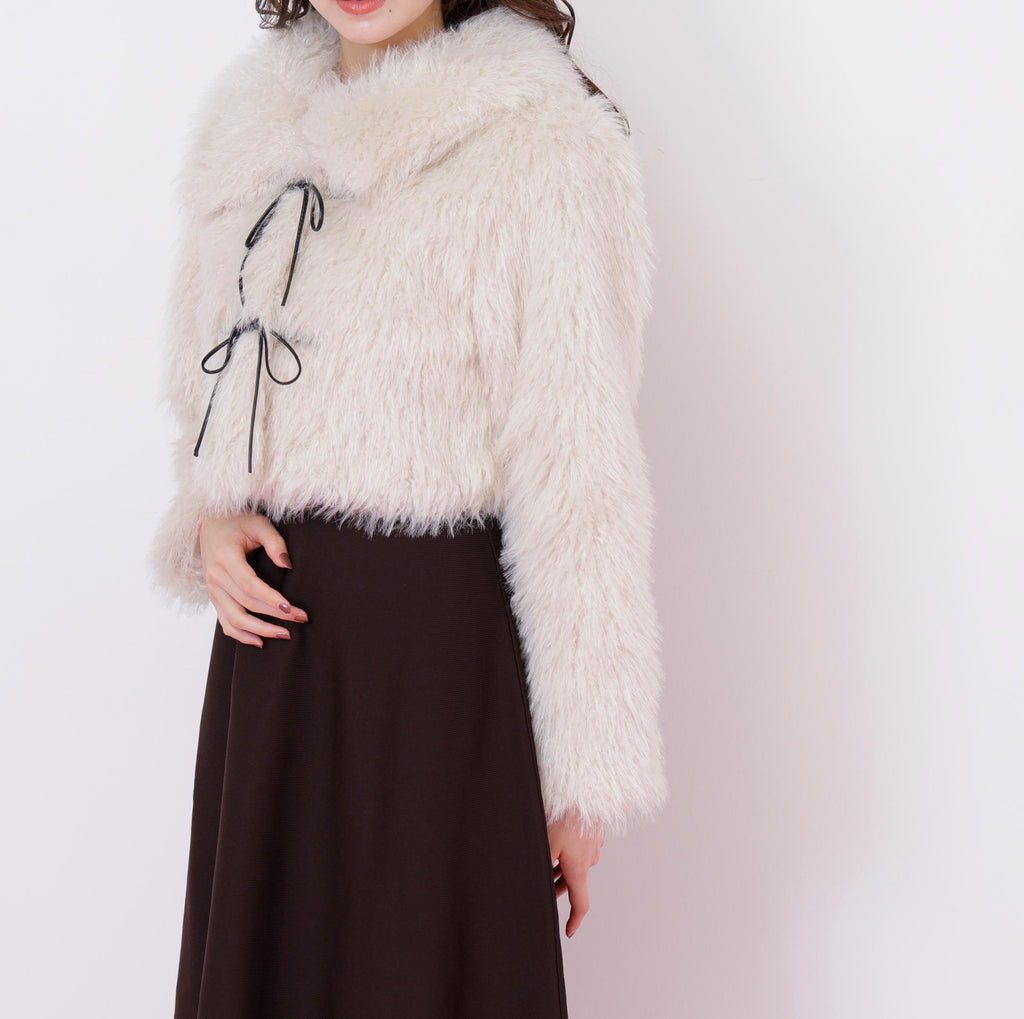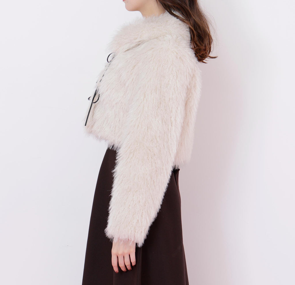 Ribbon Duffle Short Fur Coat