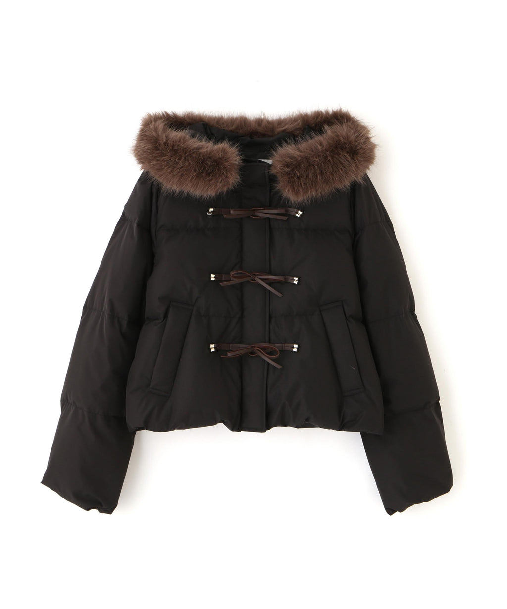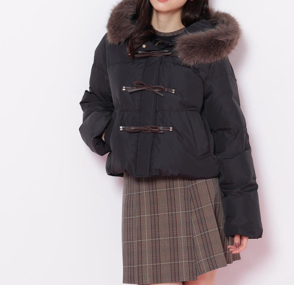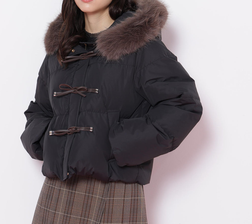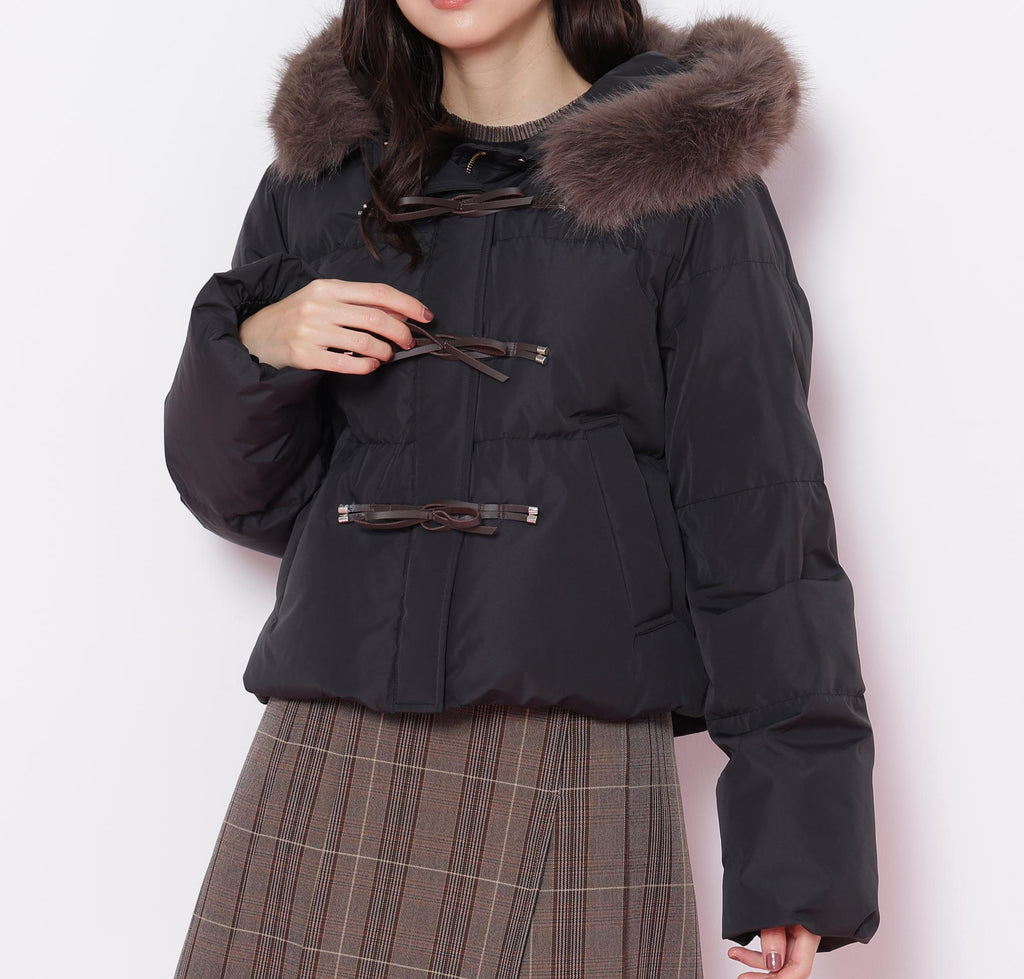 The fake fur around the hood adds a touch of elegance to the face area. The short length expands the styling options with bottoms.