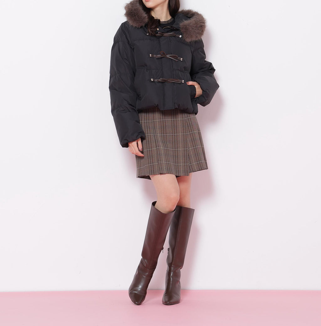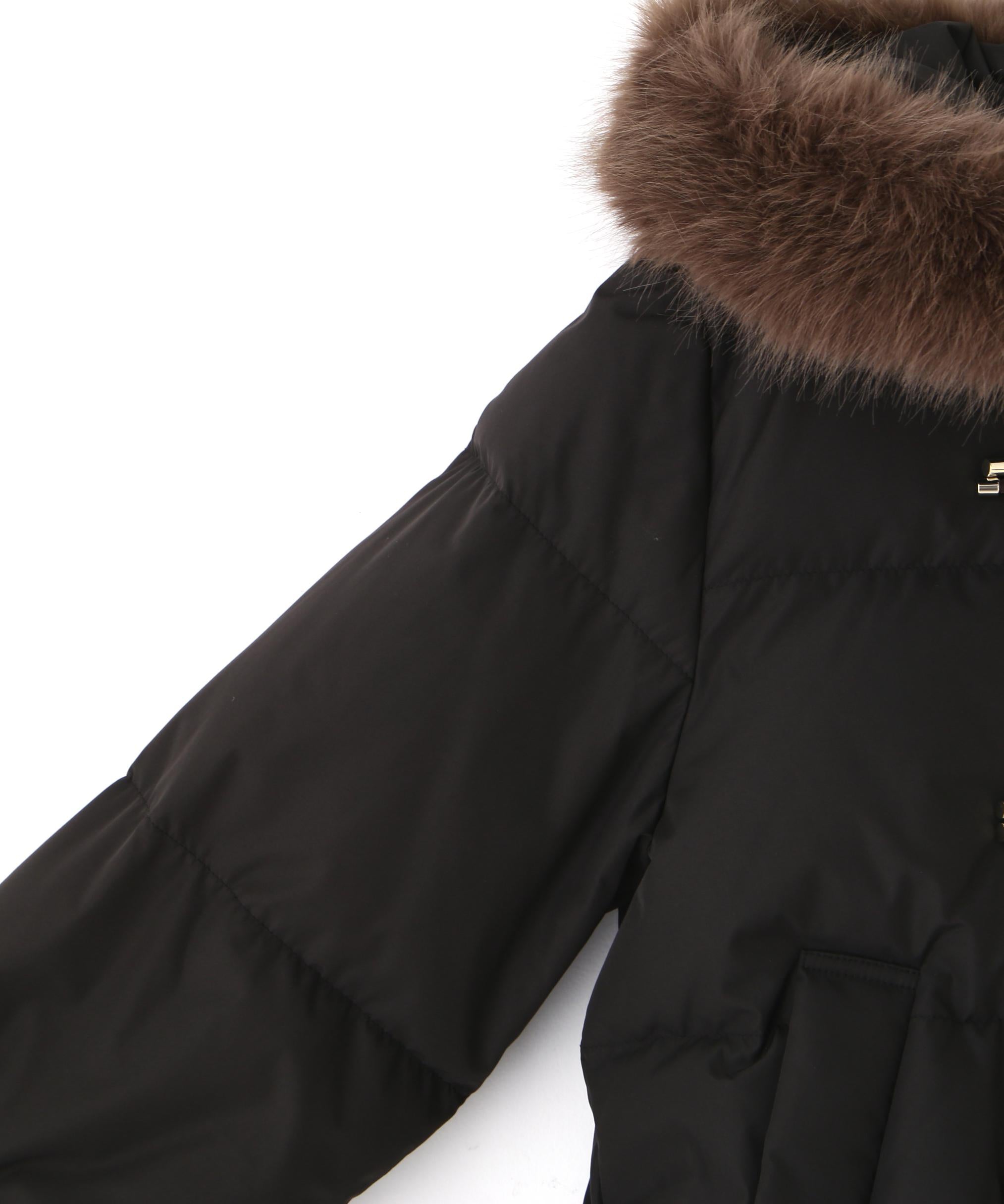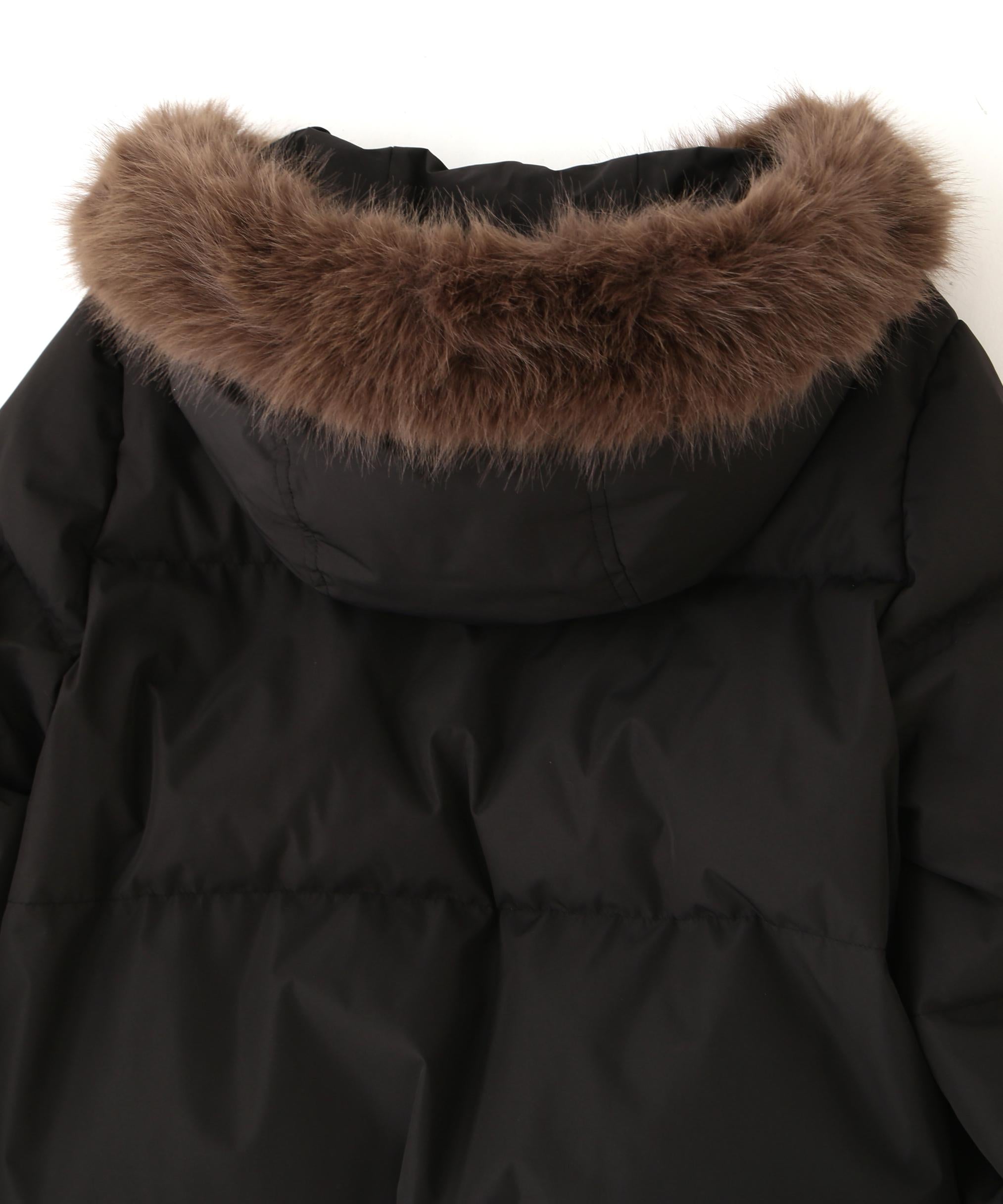 Using soft-textured peach taffeta, it keeps the warmth of down feathers while achieving a volume that does not look bulky.
