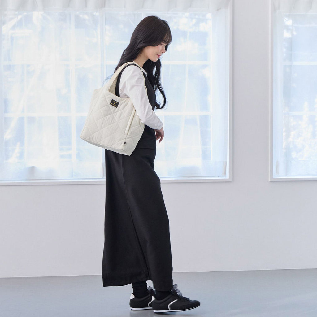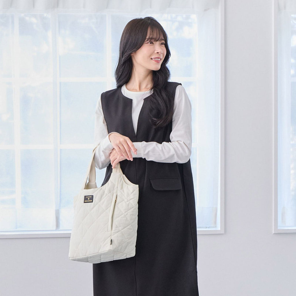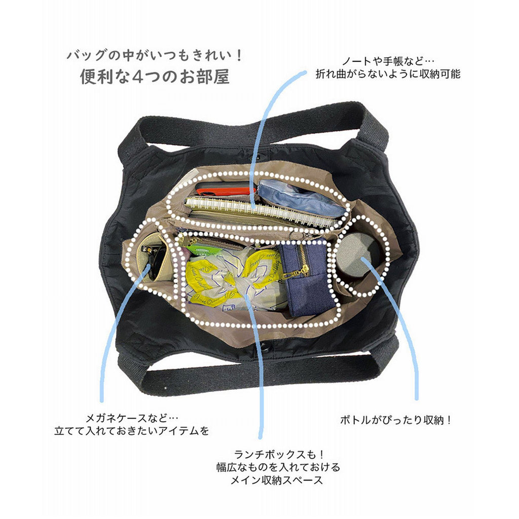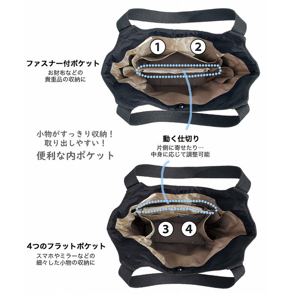 Rootote tote bag for women with moving partition, large capacity, shoulder strap, self-standing, sub-bag LT round Paruti quilt-D 3674