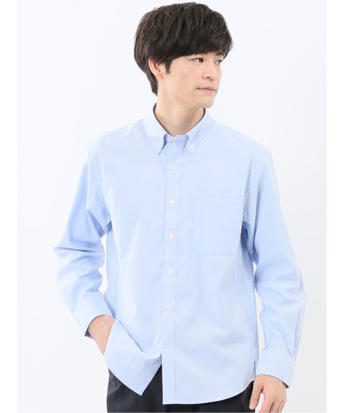 Cotton blend oxford button-down long sleeve shirt
