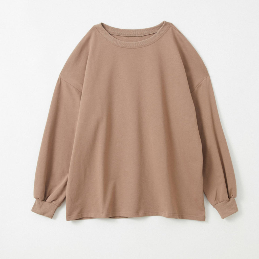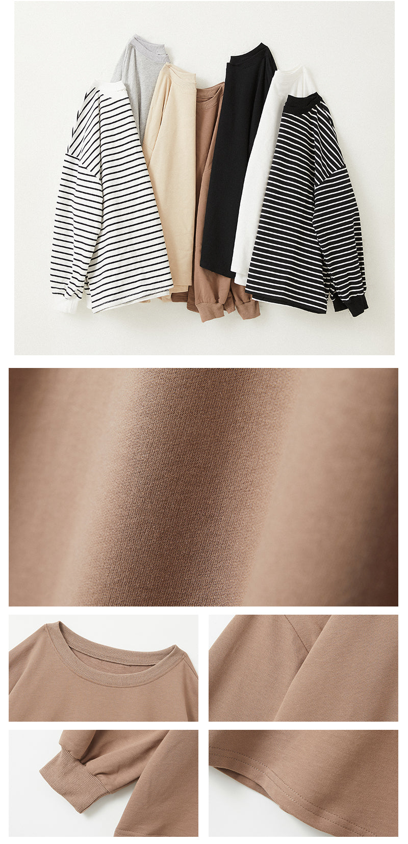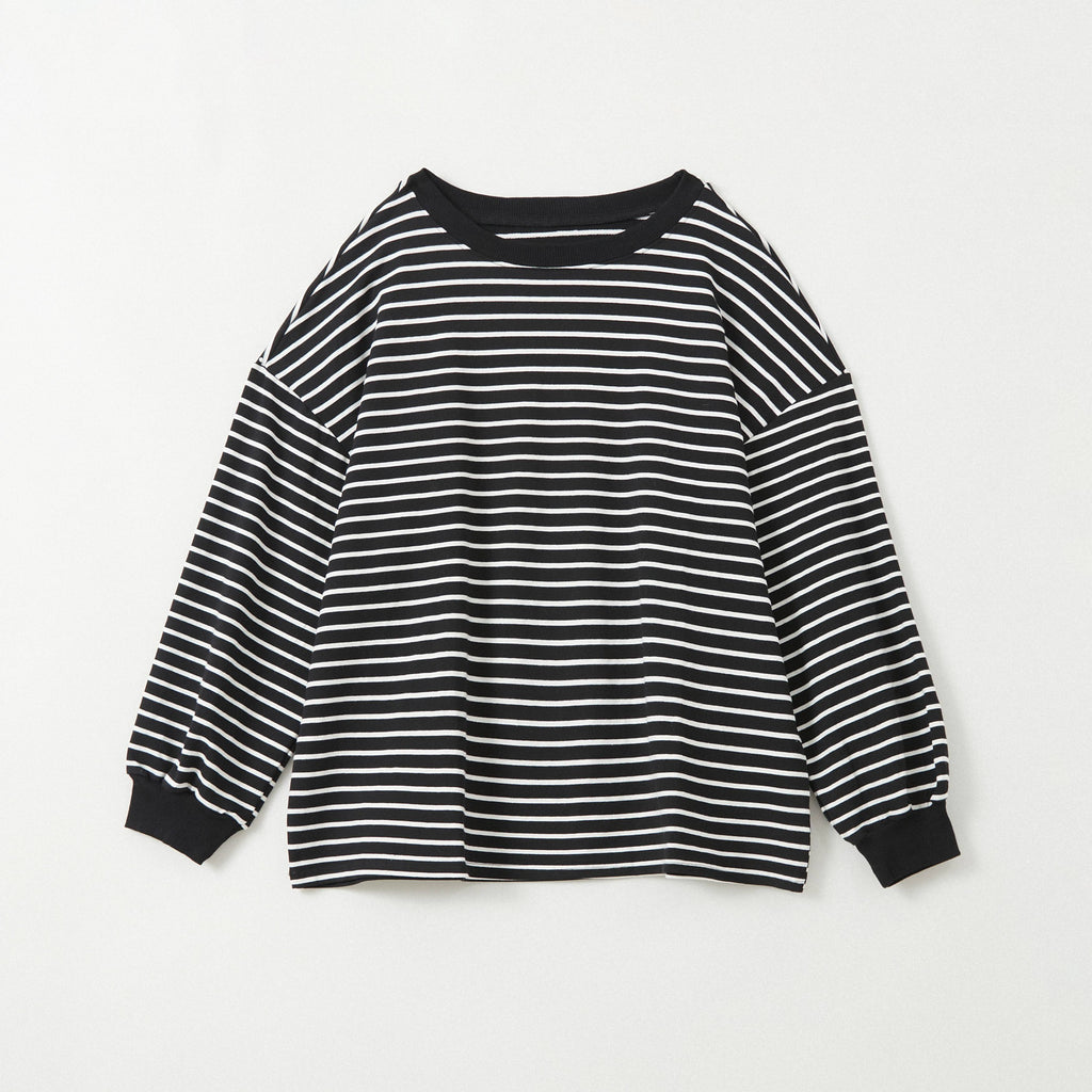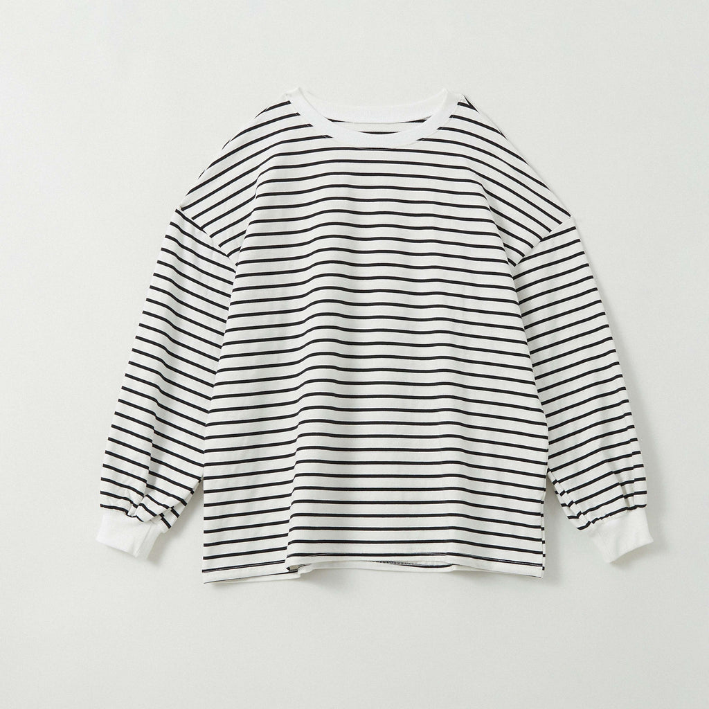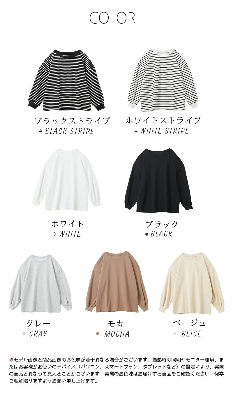 Airose Mirage Cut and Sewn Top for Women Long Sleeve T-Shirt 100% Cotton Ribbed Cuffs Oversized Sweat Trainer Striped Pattern Top Relaxed Silhouette Long Sleeve Puffy Sleeves Crew Neck Body Shape Cover Simple