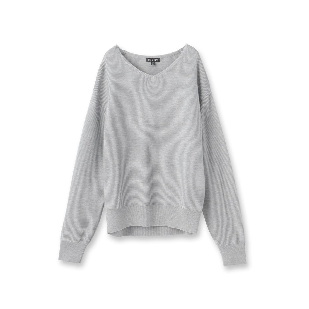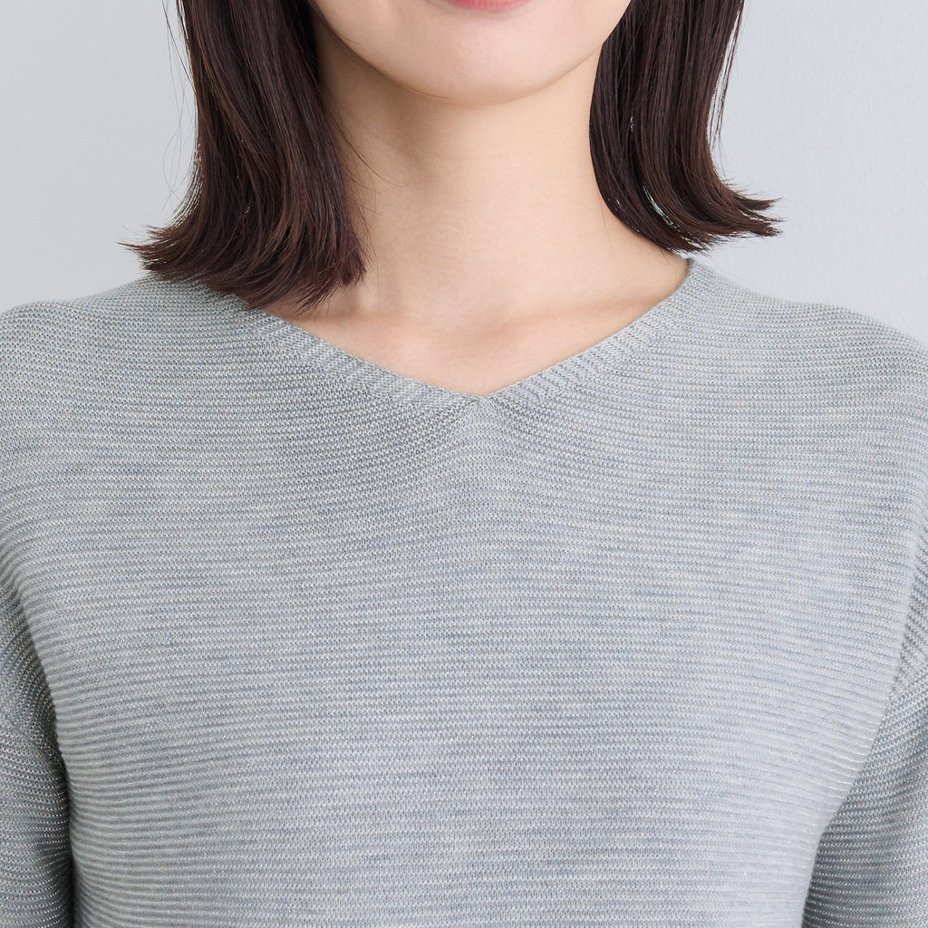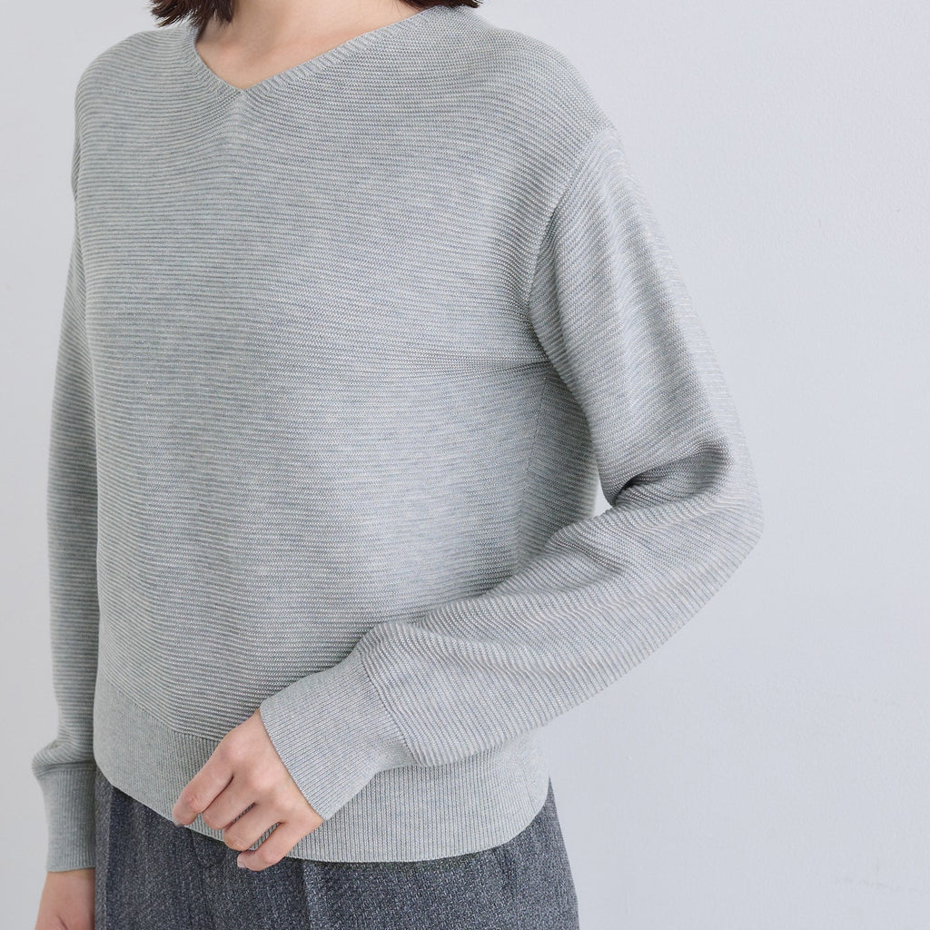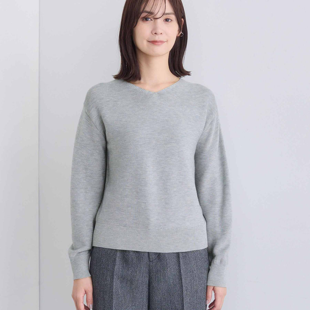 A knit pullover with a V-neck that offers a neat appearance while the rounded silhouette adds a feminine softness.