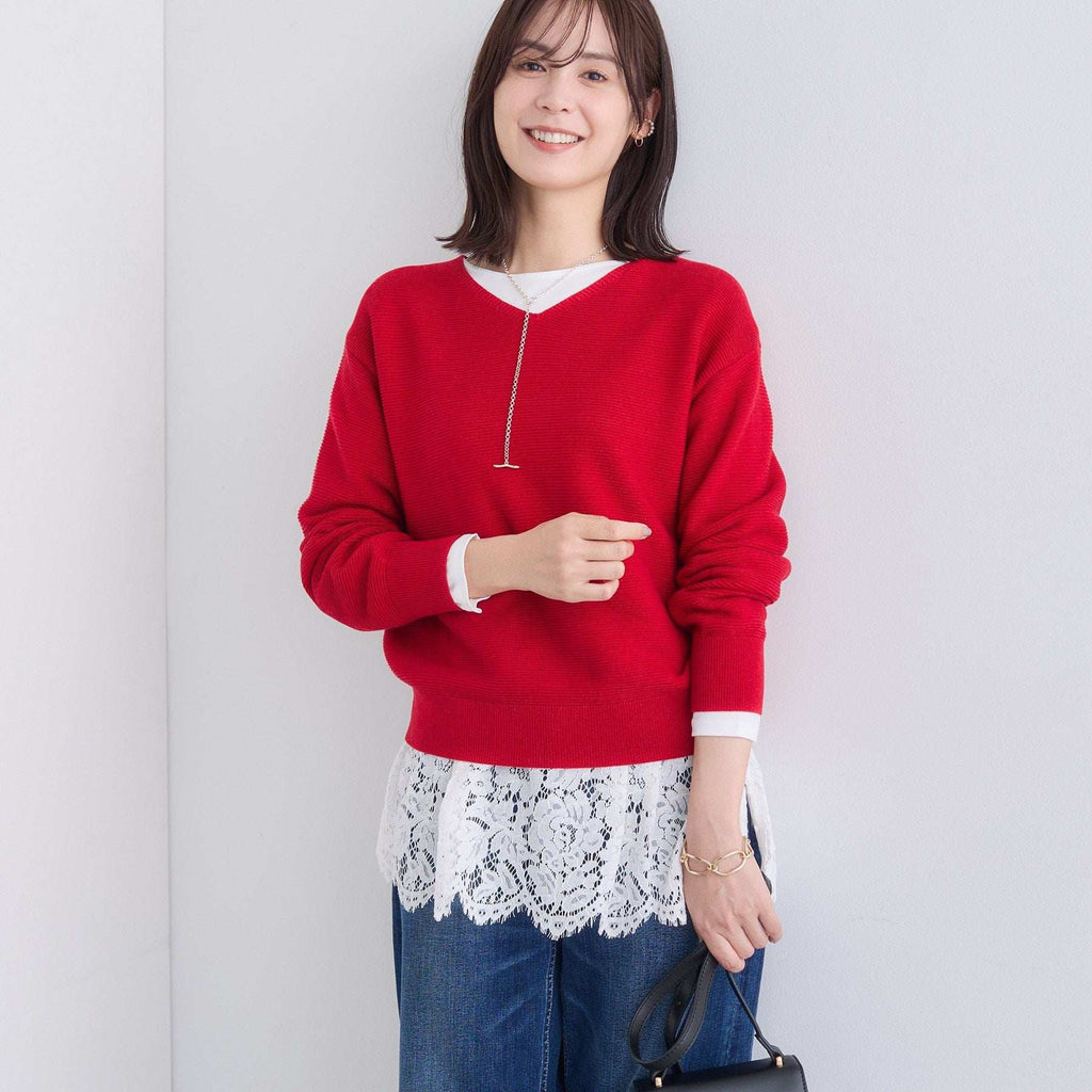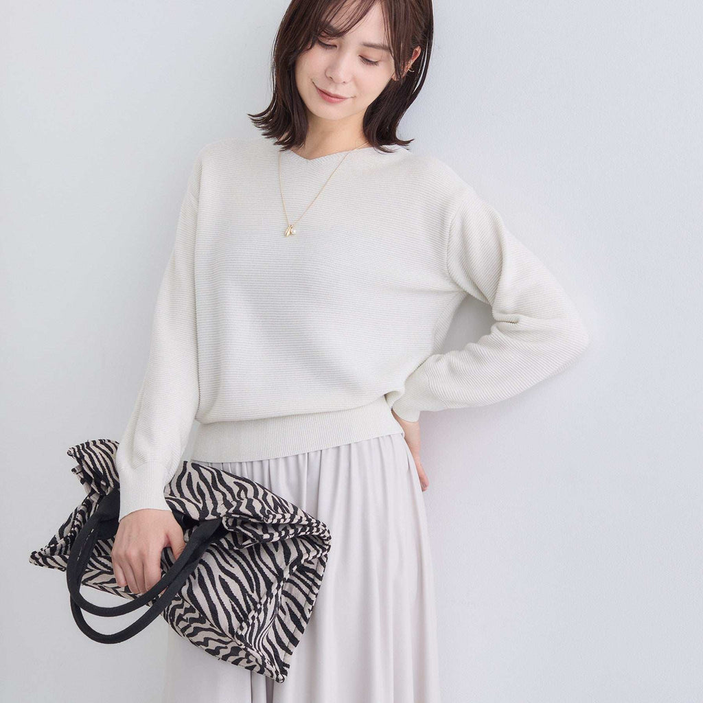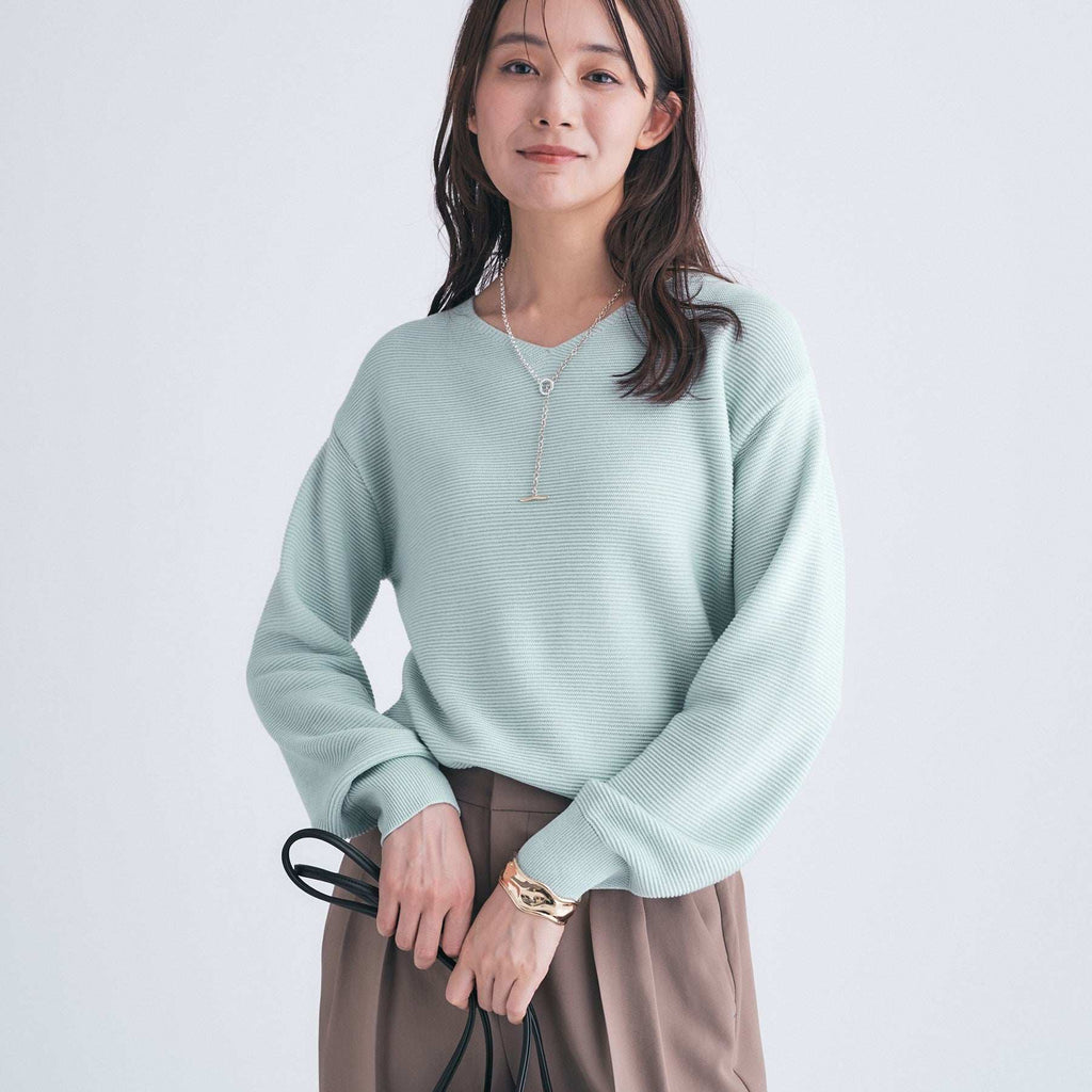 This pullover, with its gentle feminine impression, pairs well with long skirts and wide bottoms.