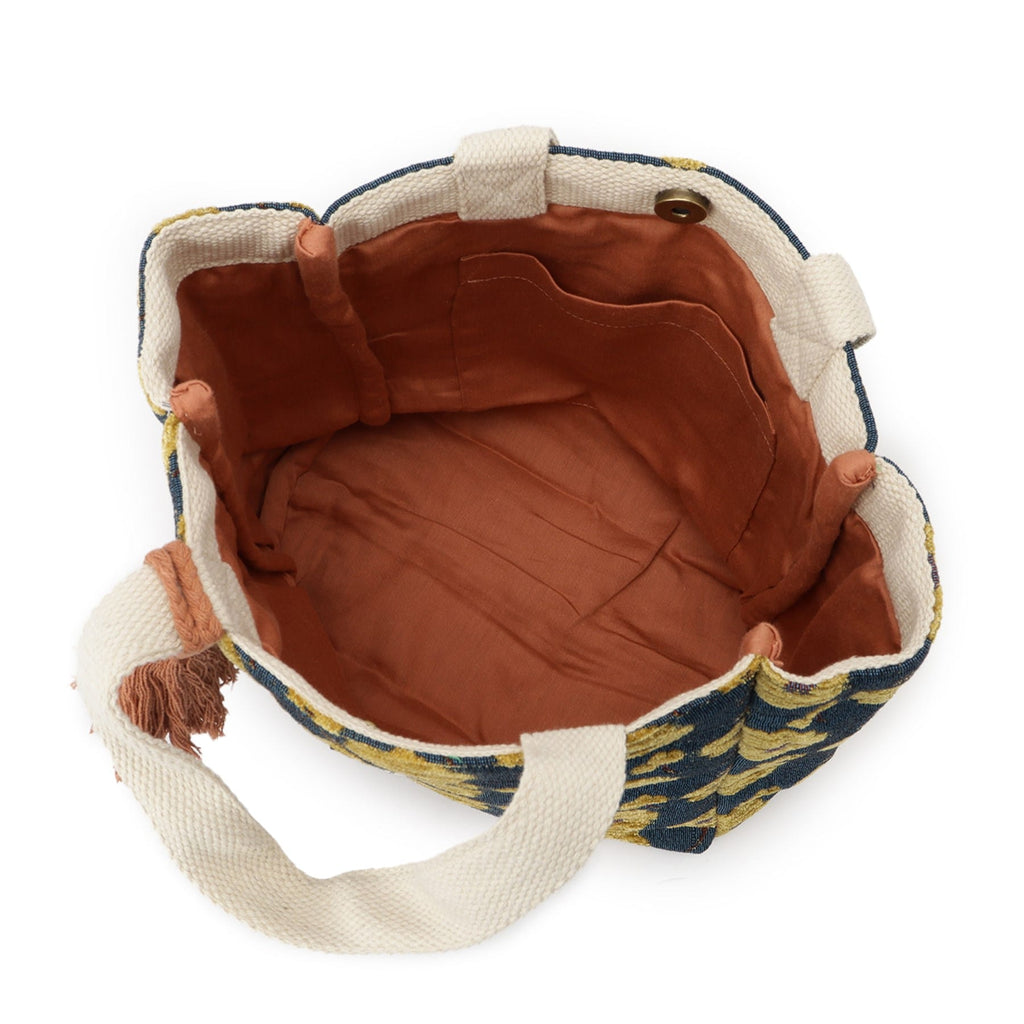 This product uses jacquard made in India, where many colored threads are intricately layered.