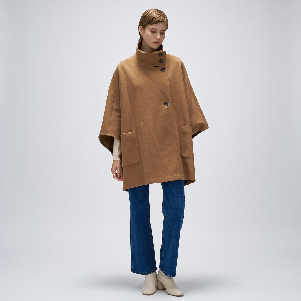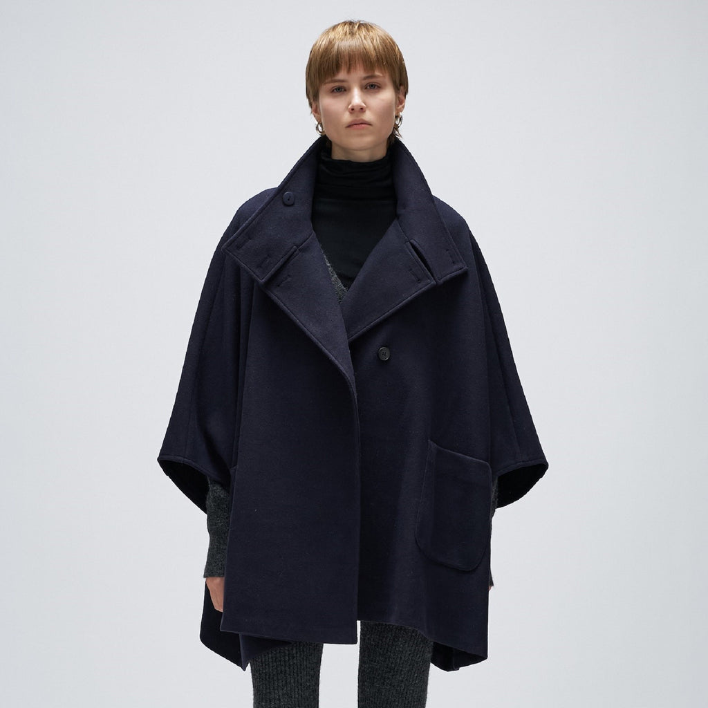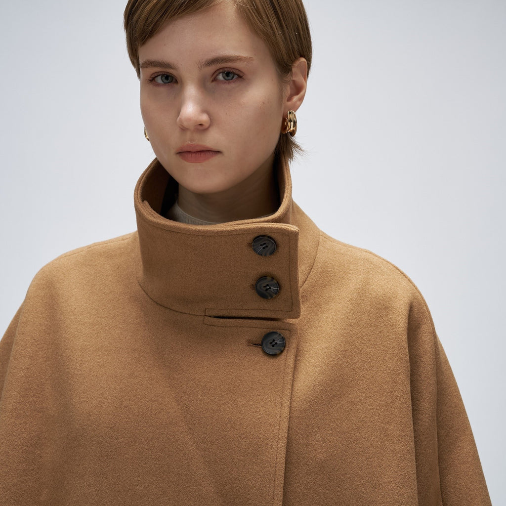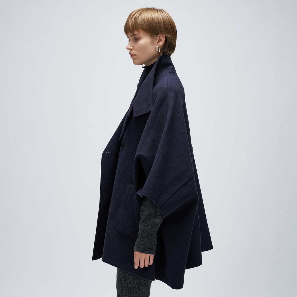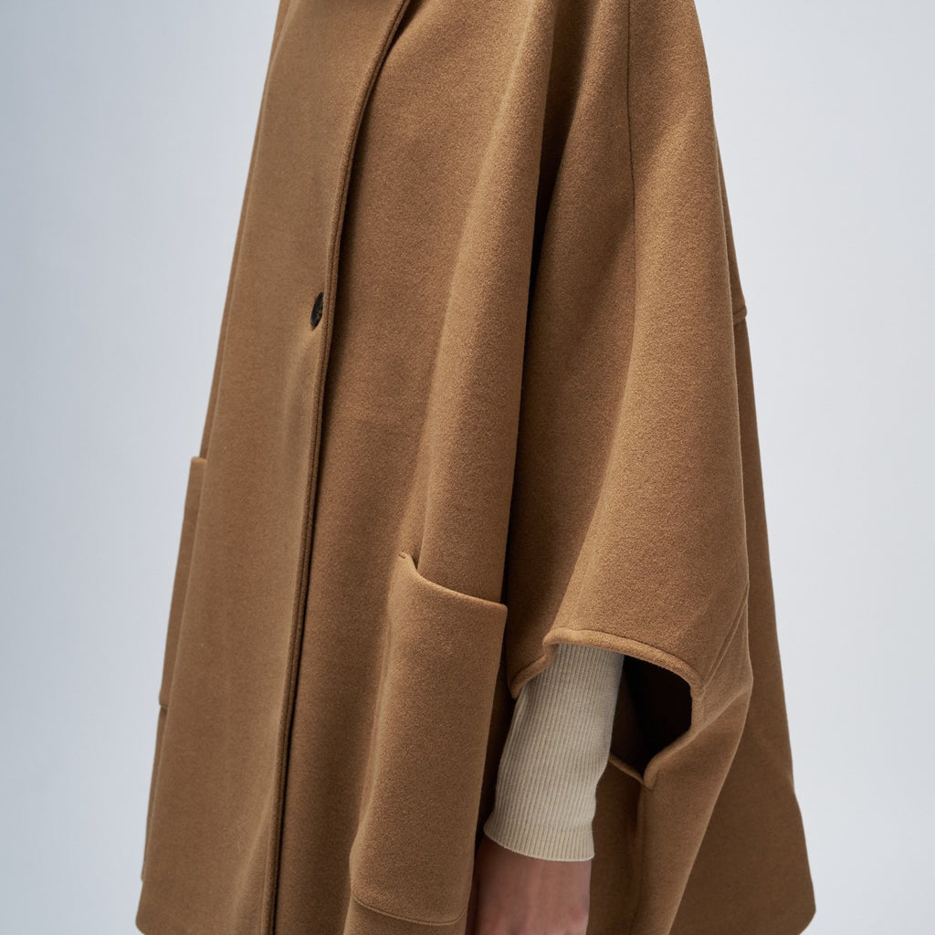 Cloenc 【Hand Washable】 Melton Jersey Cape Coat